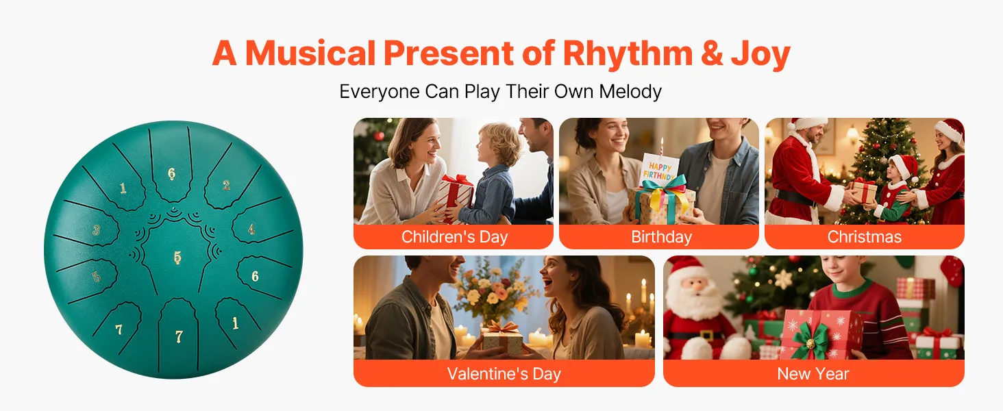 Our steel drum produces an ethereal and pure tone to heal the mind. It is a thoughtful choice for friends to relieve stress and find peace. For children, it sparks curiosity, nurtures musical sense, and supports early music education. Ideal present for birthdays, festivals, and anniversaries.