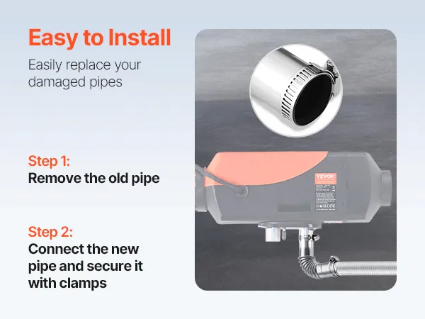 This exhaust pipe and tip exhaust and emission system offers a user-friendly installation process. With just two steps, you can replace old components and secure the new ones for improved exhaust efficiency and smooth operation of the heater system.