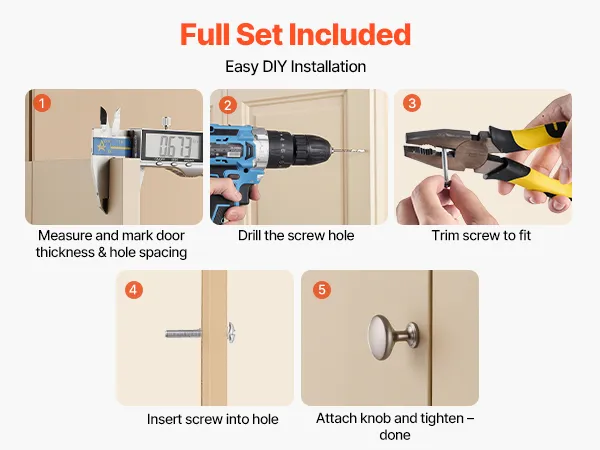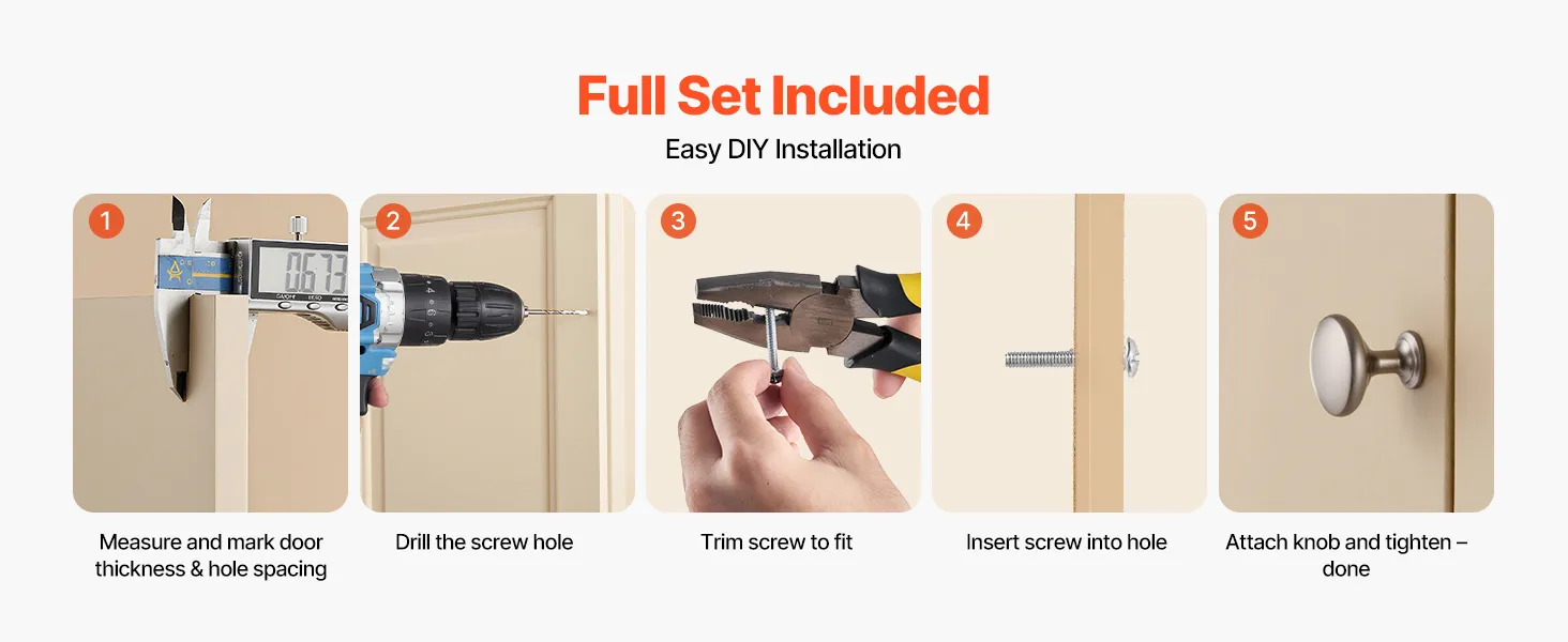 Our dresser knobs include two screw sizes to match different cabinet thicknesses. Screws can be trimmed as needed, and installation takes just a few easy steps with no special tools required.