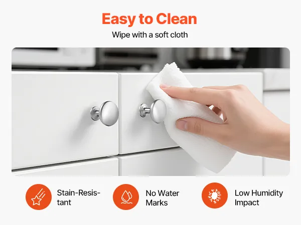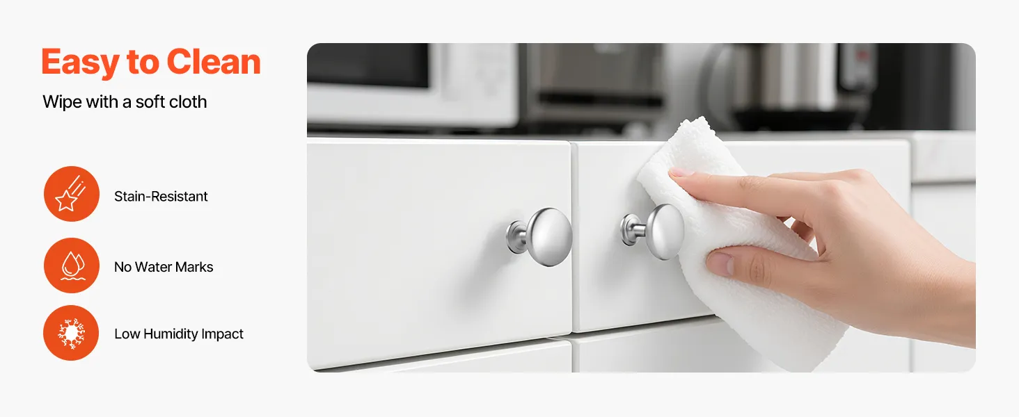 The drawer knob resists stains, water marks, and damp buildup. For daily care, simply wipe clean with a soft cloth. Maintenance is quick and hassle-free.
