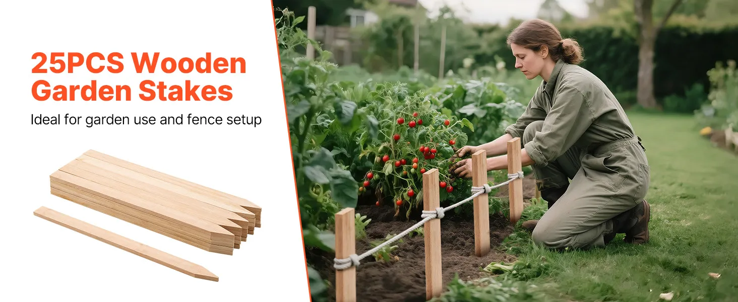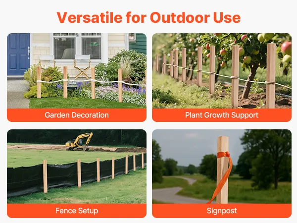 These fir wooden garden stakes are ideal for building fences, supporting plants, marking pathways, and creating decorative borders. With a pointed design for easy soil insertion, they come in multiple sizes to suit different plants and outdoor needs. Ideal for gardening, farms, and outdoor projects.