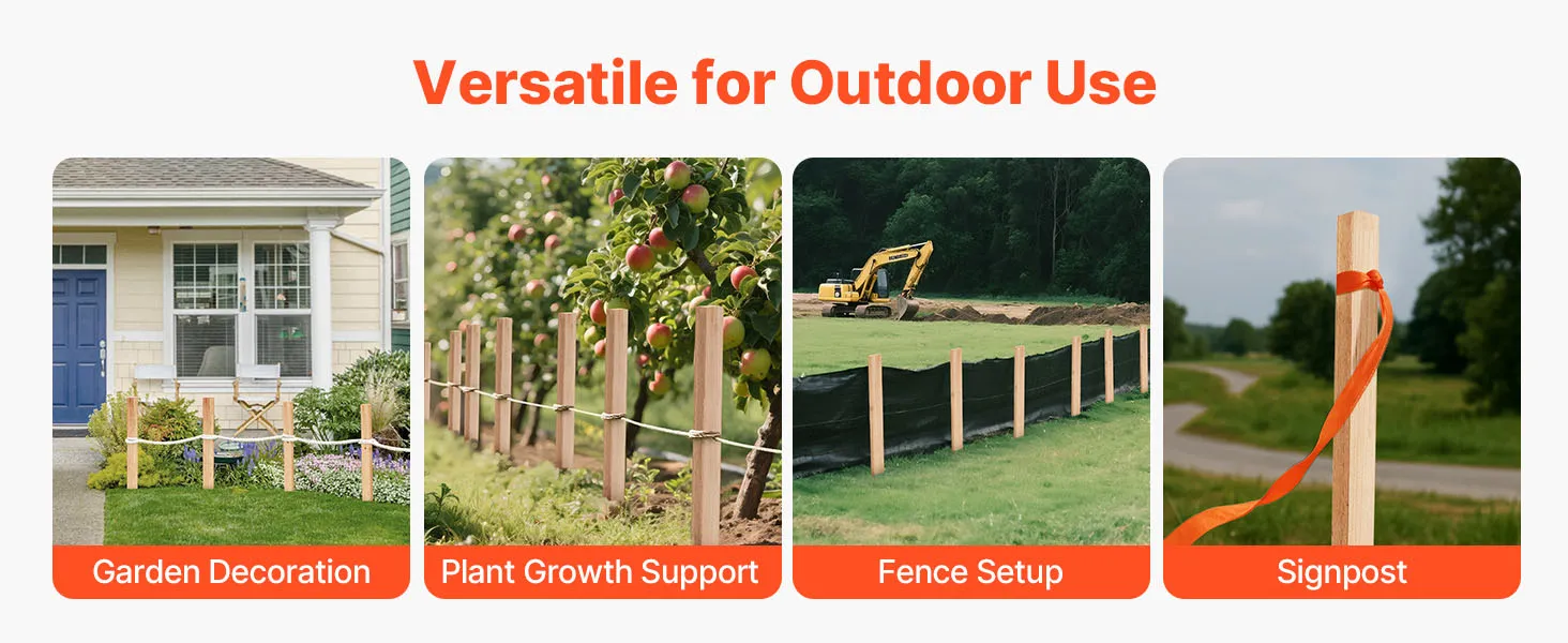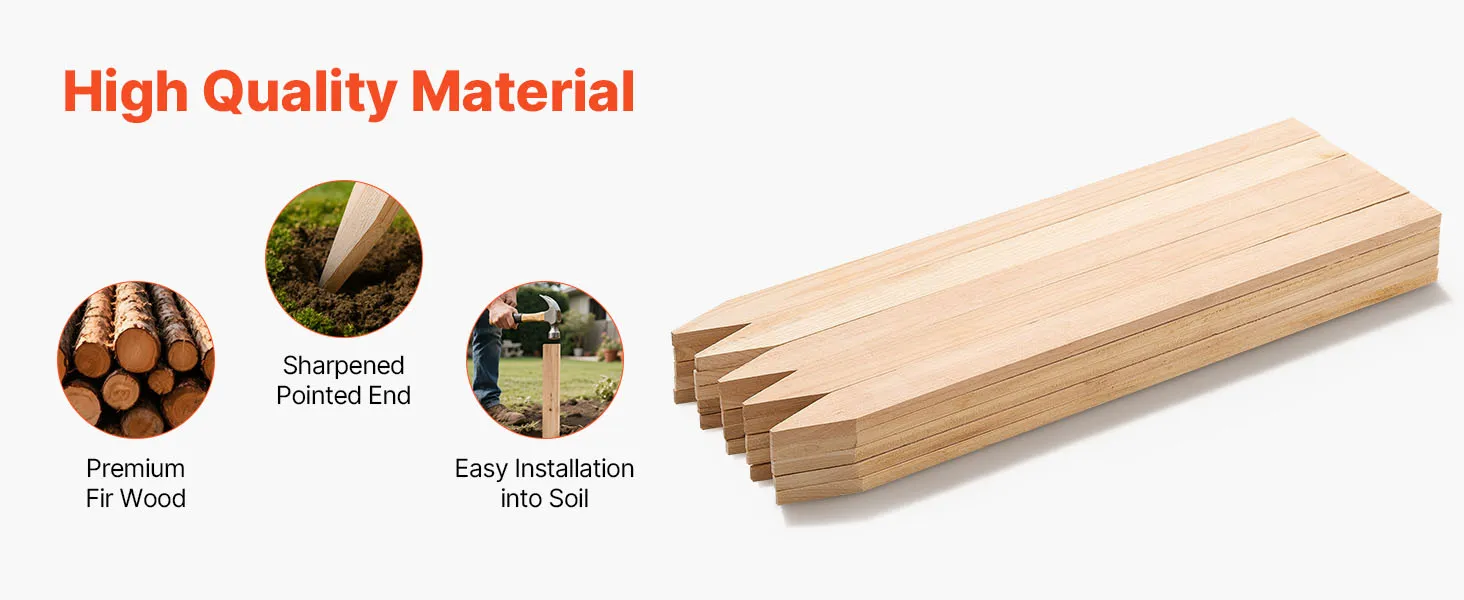 In addition to gardening, these wooden survey stakes are perfect for various uses such as fence installation, measuring projects, directional signs, and construction sites.