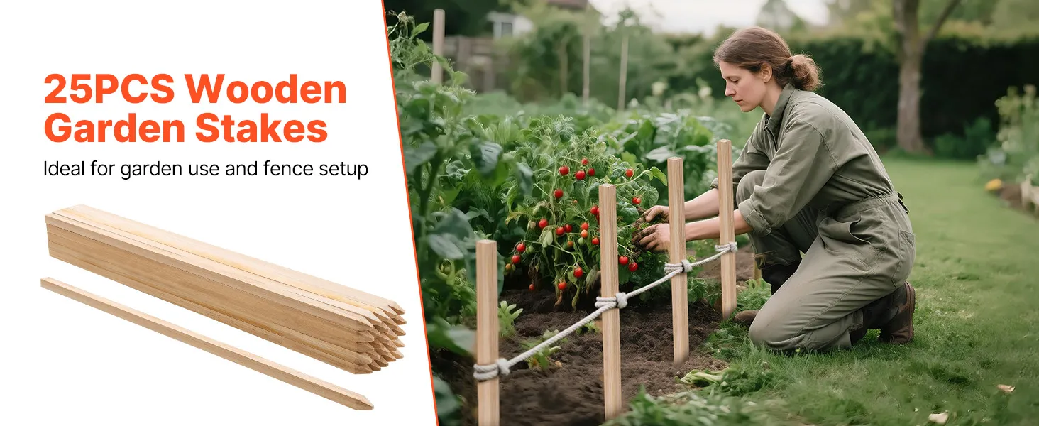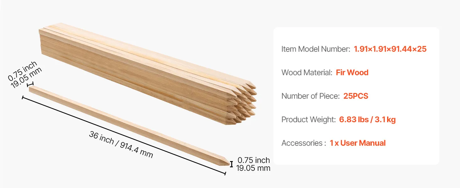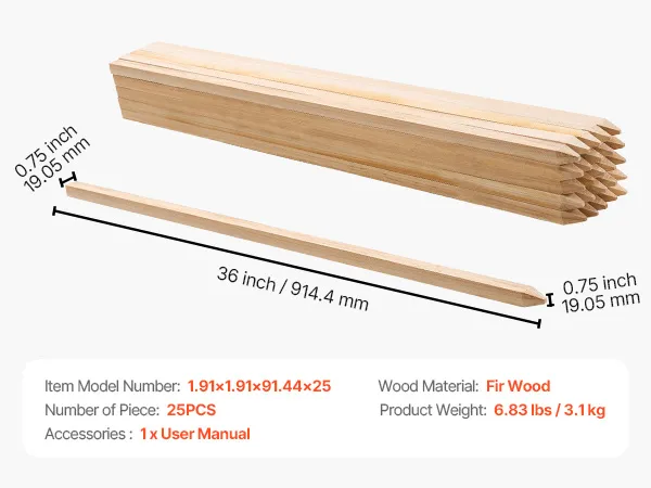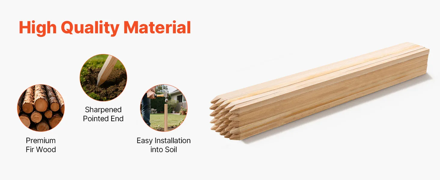 VEVOR Wooden Garden Stakes, 25 Pcs 19.05×19.05×914.4 mm Survey Grading Stakes, Garden Ground Stake with Sharp Point, Fir Wood Plant Support Stake, Sign Posts for Silt Fence Yard Boundaries Baselines