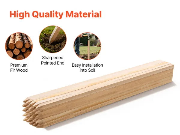 In addition to gardening, these wooden survey stakes are perfect for various uses such as fence installation, measuring projects, directional signs, and construction sites.