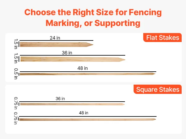 These fir wooden garden stakes are ideal for building fences, supporting plants, marking pathways, and creating decorative borders. With a pointed design for easy soil insertion, they come in multiple sizes to suit different plants and outdoor needs. Ideal for gardening, farms, and outdoor projects.