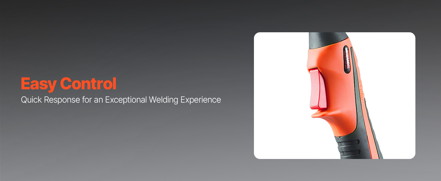 • Легкий и удобный в эксплуатации: Разработан с эргономичной длинной ручкой и увеличенной рукояткой для лучшей посадки в руке. Устойчивый спусковой механизм обеспечивает легкое управление и высокую чувствительность, обеспечивая отличные сварочные характеристики.