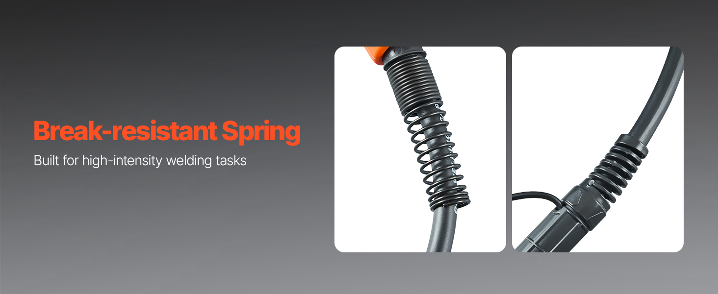 • Высокая долговечность: Наша сварочная горелка, оснащенная устойчивой к разрыву пружиной и прочным 15-футовым кабелем, обеспечивает долговечность, надежную работу и отличную досягаемость для крупномасштабных проектов в сложных условиях.