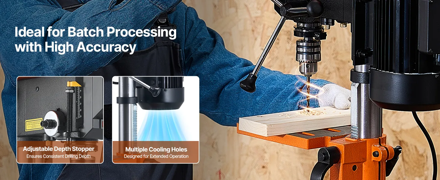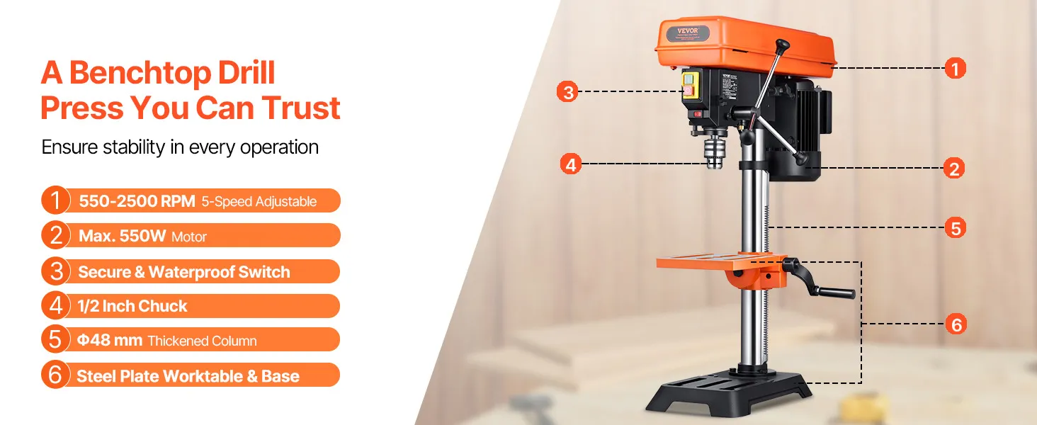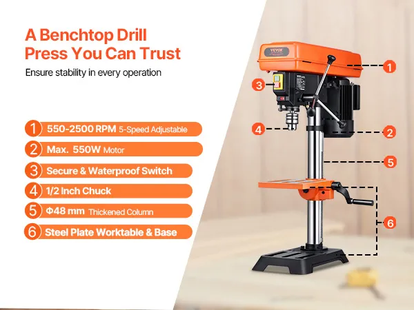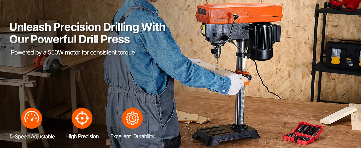 • Exceptional Drilling Performance: Powered by a robust 550W induction motor, this benchtop drill press delivers superior power and stability, ensuring top-notch performance even during extended drilling sessions.