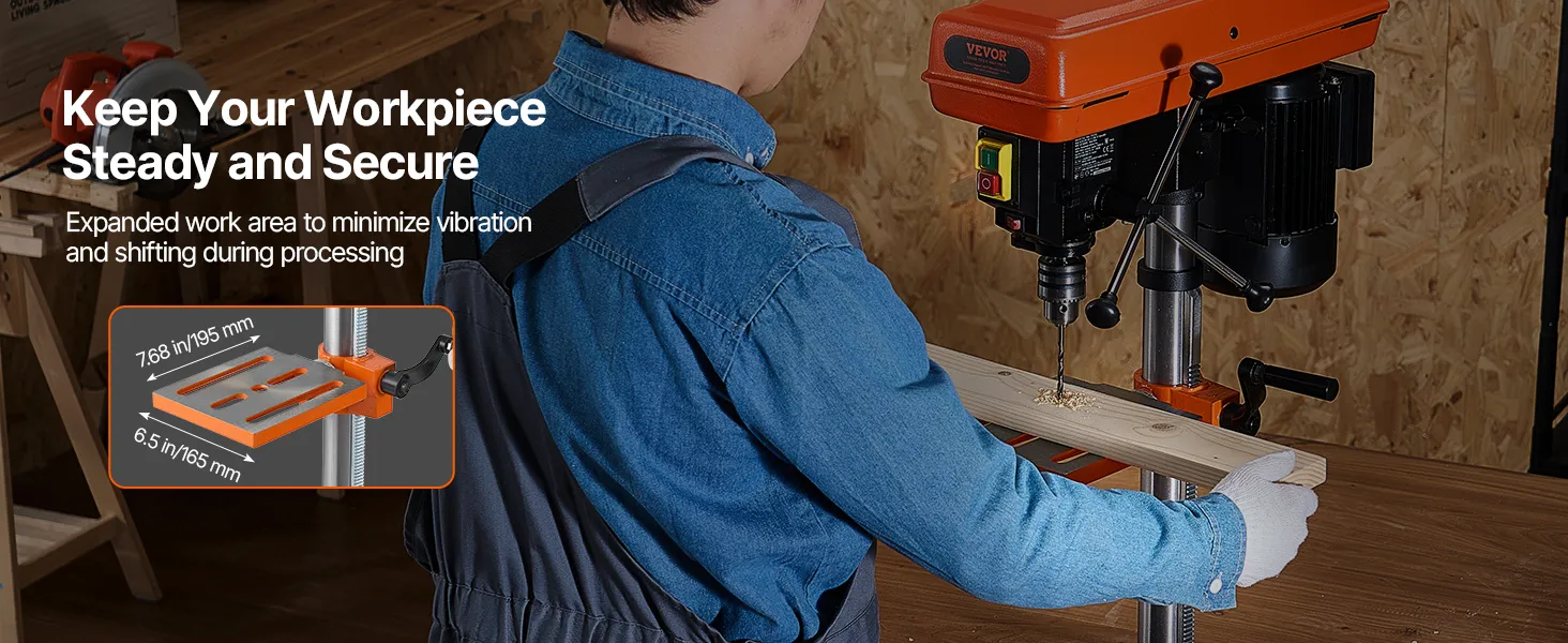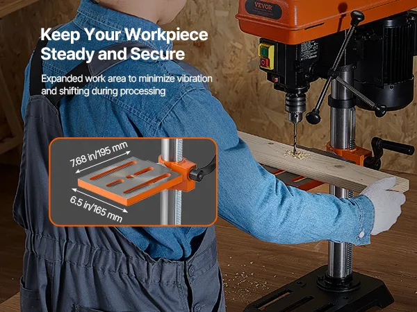 • Гибкий и регулируемый рабочий стол: Испытайте непревзойденную гибкость и стабильность благодаря толстому металлическому рабочему столу, который регулируется по высоте и наклоняется до 45 °. Наш настольный сверлильный станок идеально подходит для точного и сложного сверления отверстий, что делает его бесценным инструментом для любой мастерской.