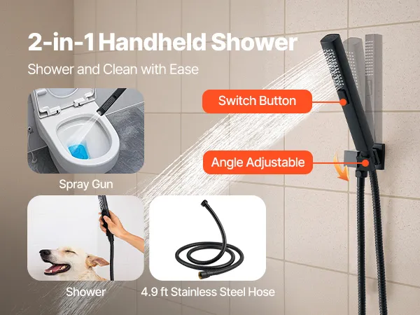 The shower faucet set provides flexible angle adjustment with smooth operation that won't get stuck.