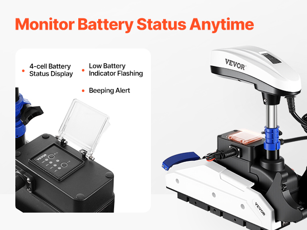 VEVOR Electric Trolling Motor, 12V 55lbs Thrust with GPS, 10-Speed Bow Mounted Saltwater Outboard Boat Motor with Remote Control & LCD Battery Indicator, for Kayaks, Fishing Boats, 54-Inch Shaft