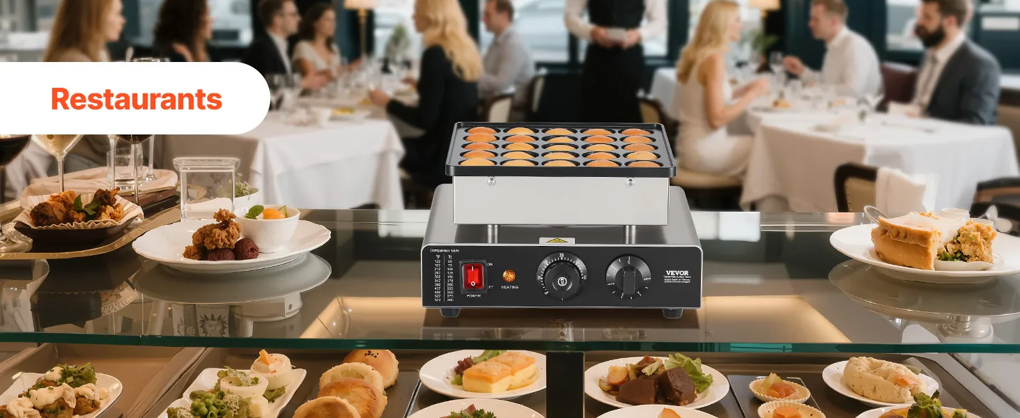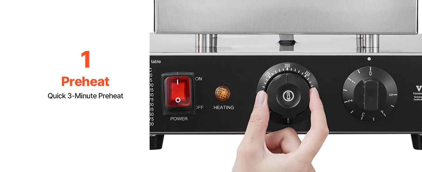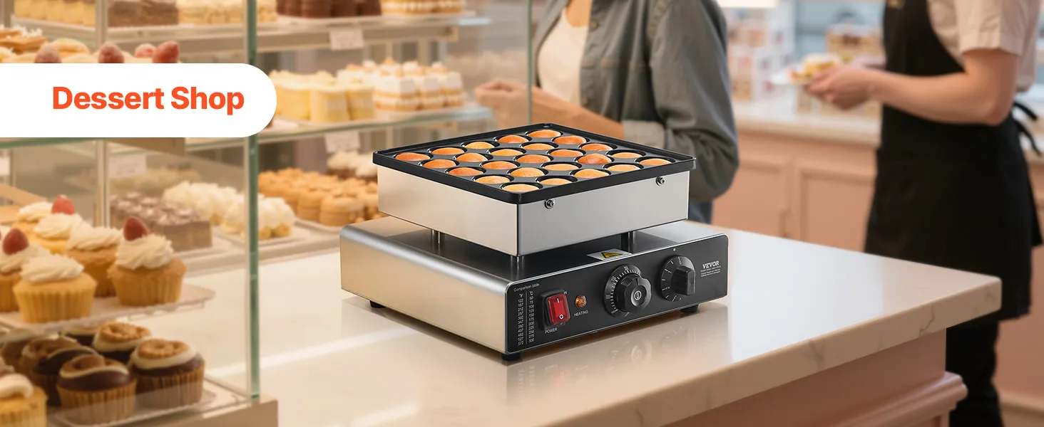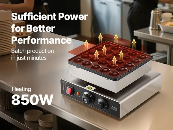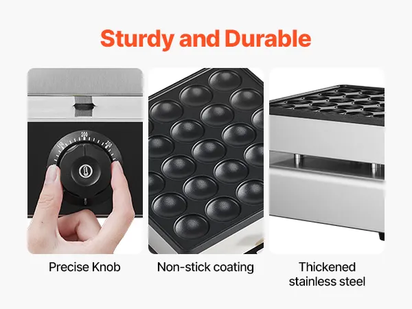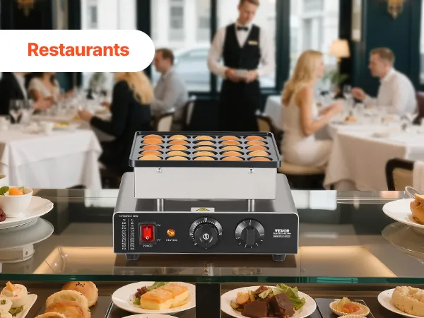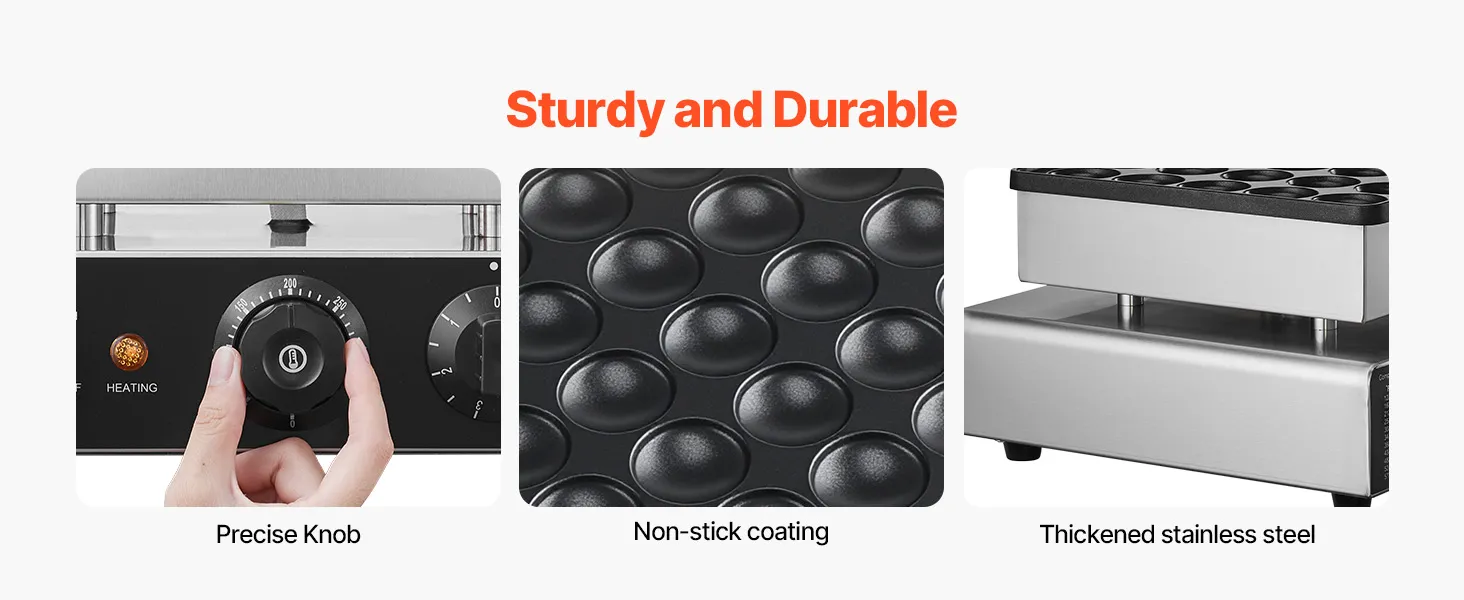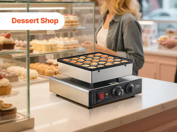 You can use this dutch pancake baker to create delicious pancake desserts for your dessert shop. It bakes up to 25 waffles at once, ideal for serving breakfast or afternoon tea. With its unique panel design, it stands out as the brilliant choice for your snack stall.