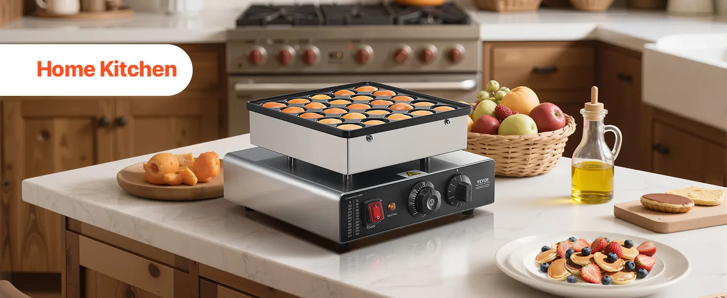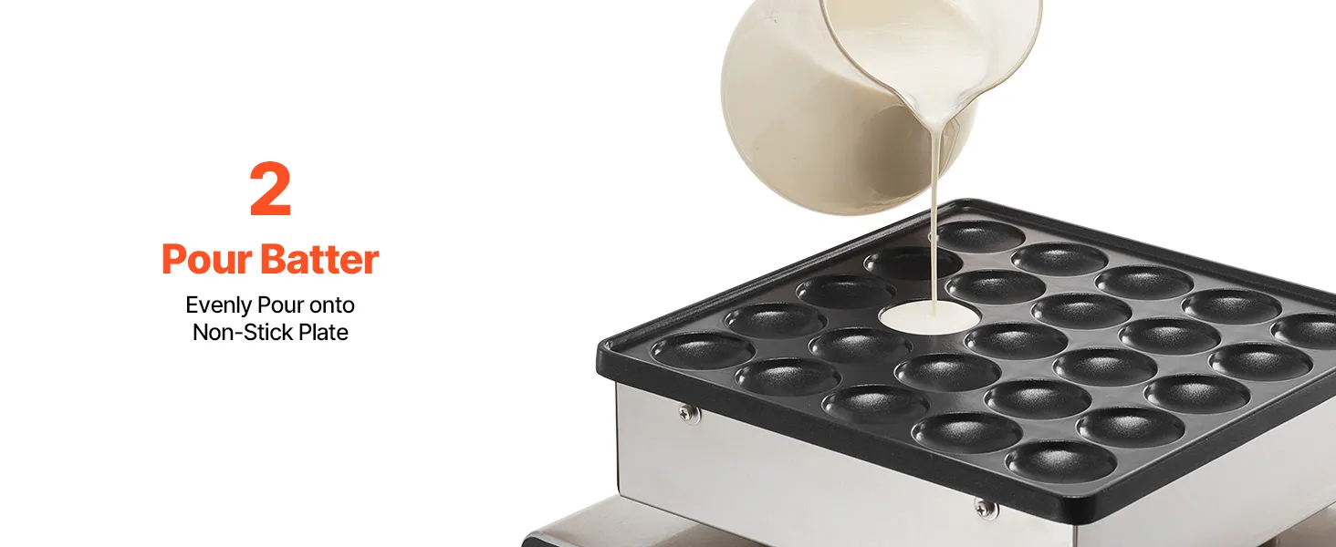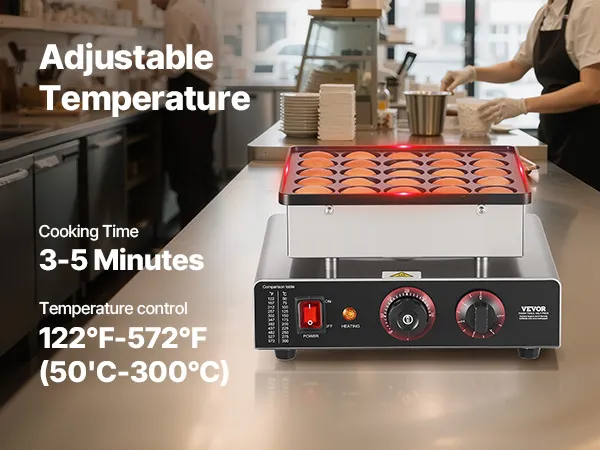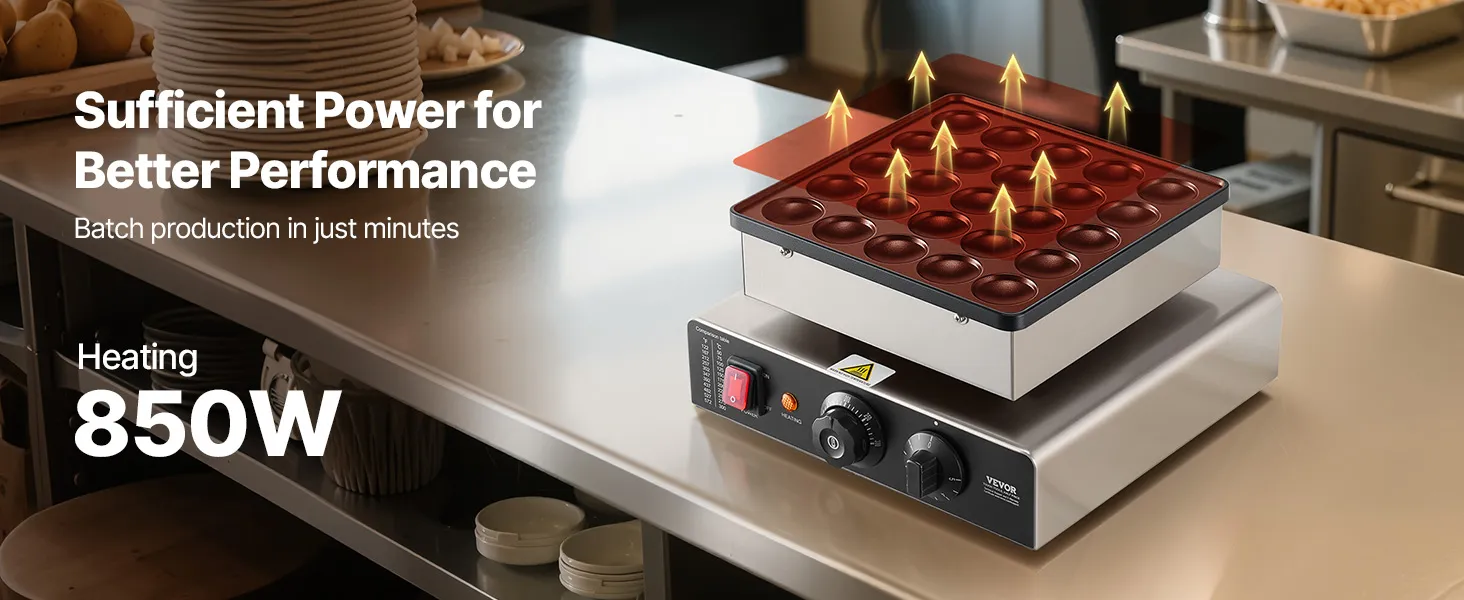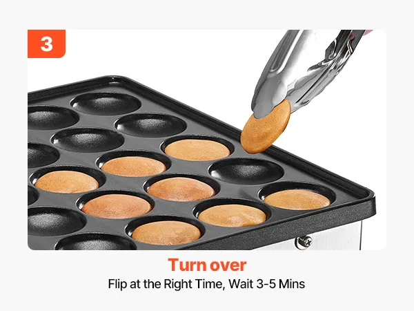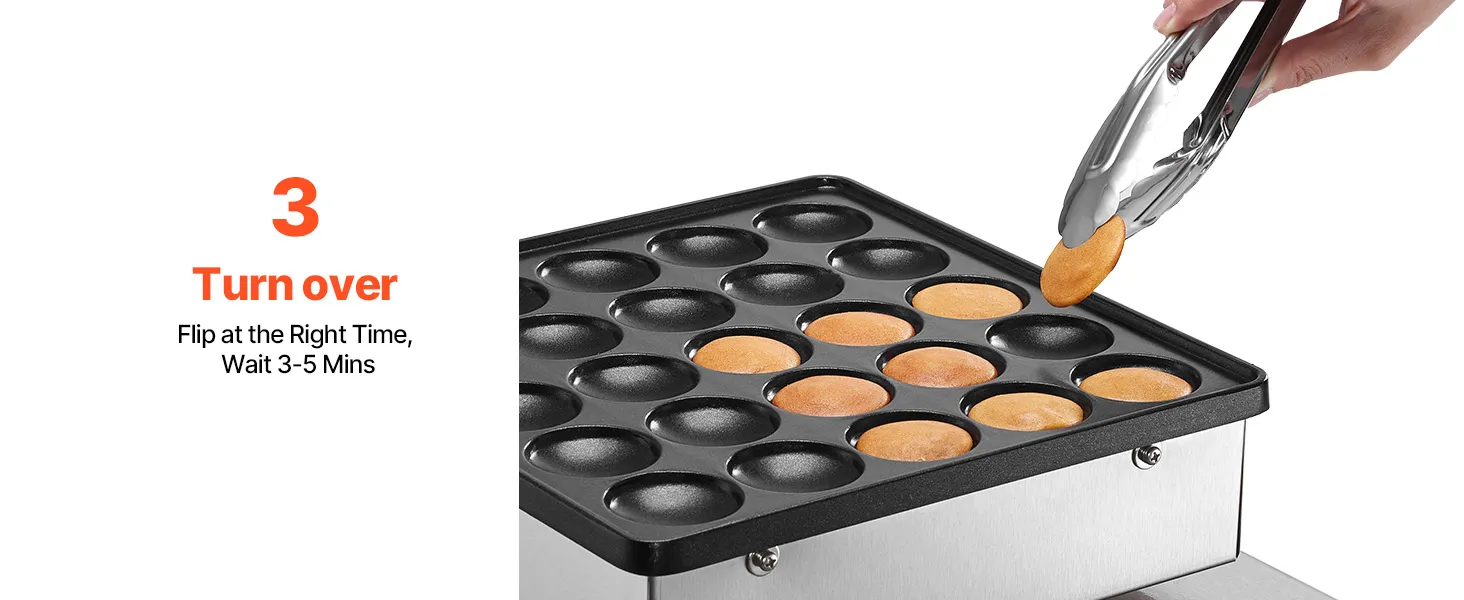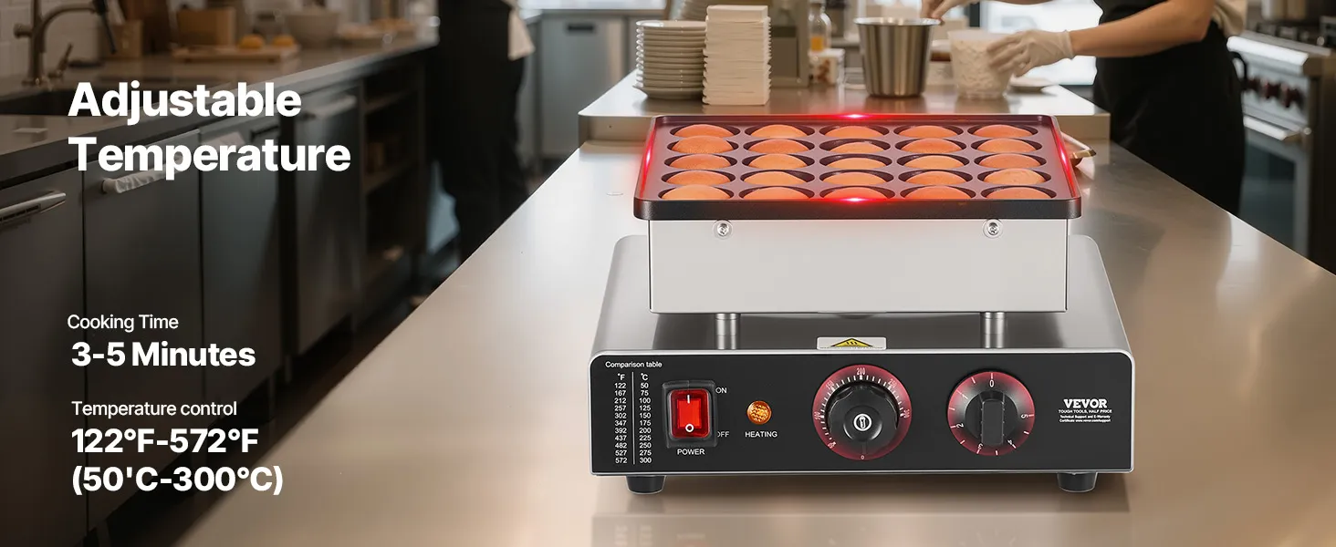 VEVOR Mini Pancake Maker, 25PCS 43mm Diameter Dutch Muffin Waffle Baker, Non-stick Stainless Steel Poffertjes Grill, Commercial Electric Dorayaki Machine, Temp & Time Control, Home Kitchen Restaurant