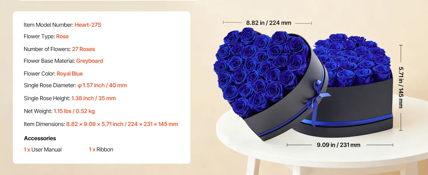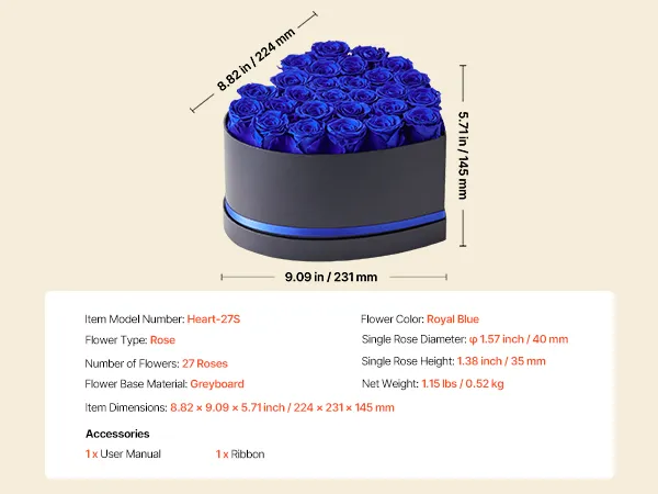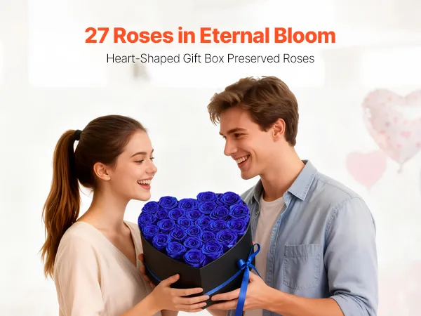VEVOR Forever Flowers, 27 Preserved Roses in a Heart Shape Box, Eternal Flowers Immortal Bouquet Birthday Present for Women Her Wife Mothers, Anniversary, Valentine's Day,Christmas, Royal Blue