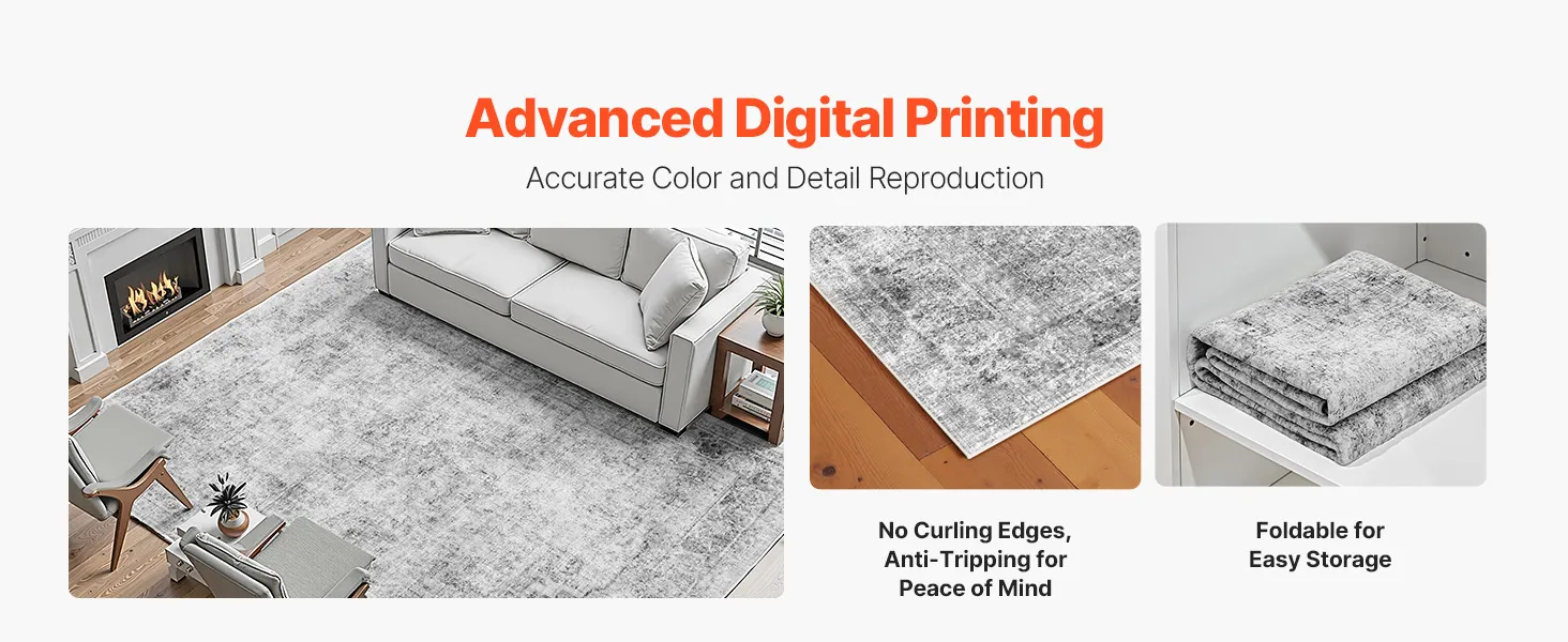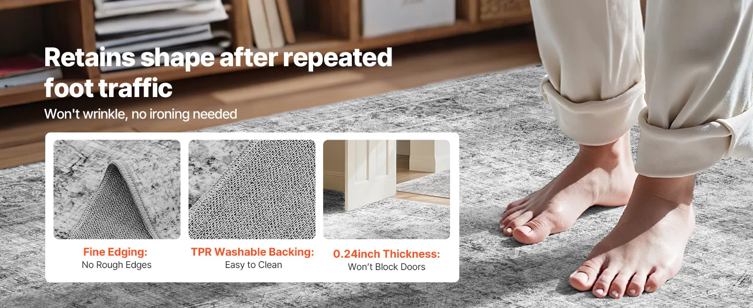 VEVOR 275×365 cm Large Washable Boho Rug, Non-Slip, Tear-Resistant, Pet & Child Friendly Carpet for Bedroom, Living Room, Gray