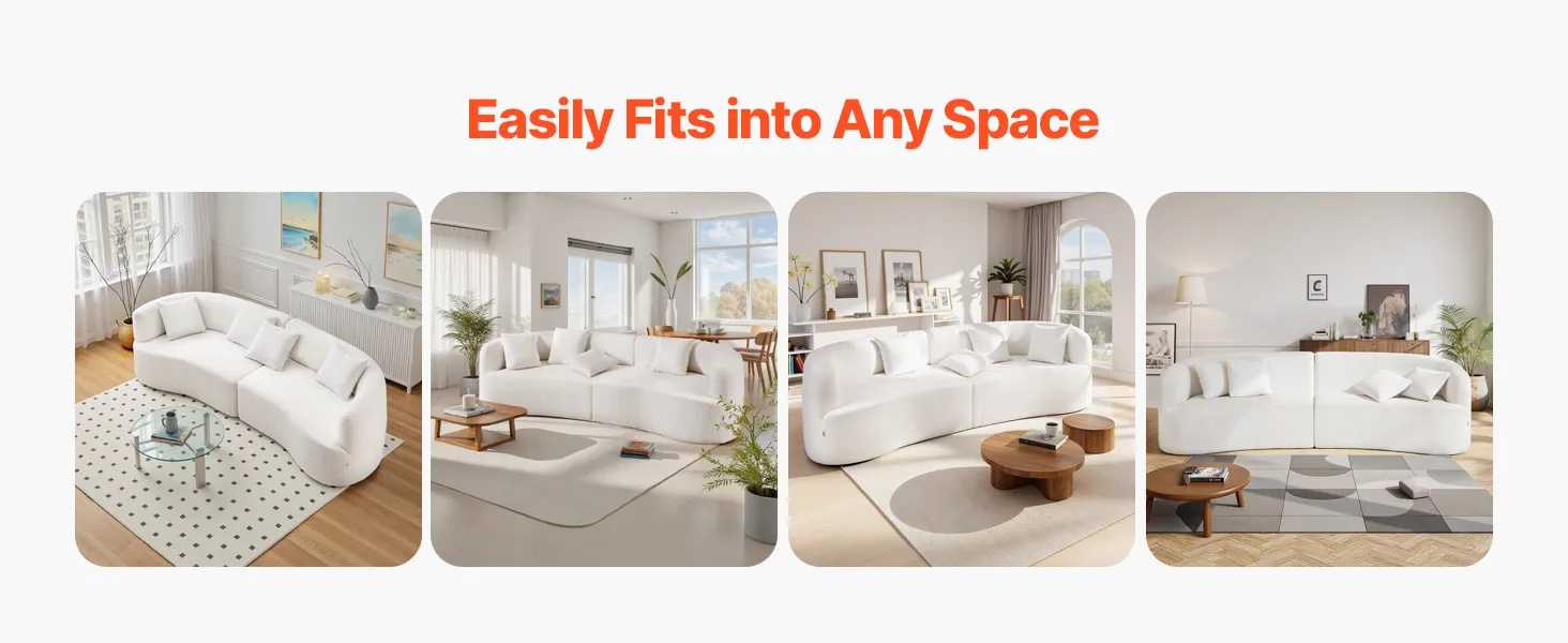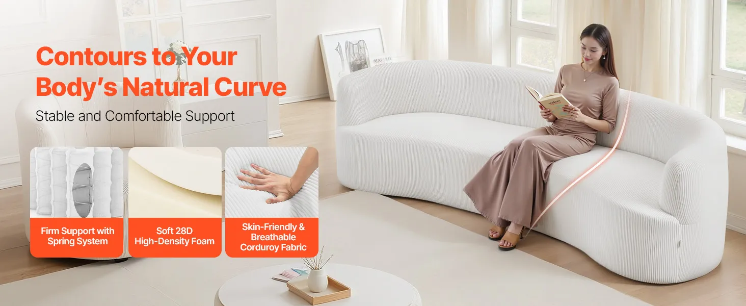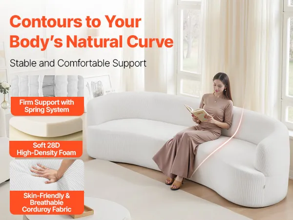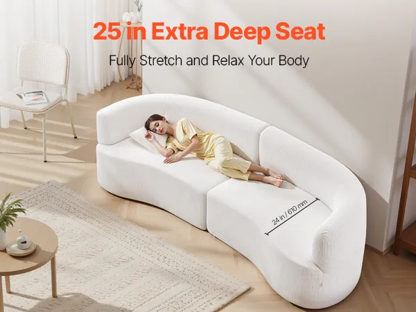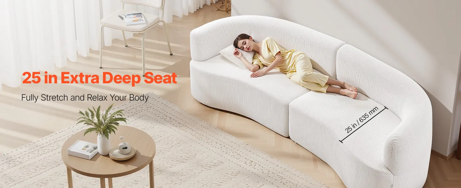 The curved couch's deep seat design provides ample space to stretch out or curl up, offering ultimate comfort and relaxation. Whether reading, watching TV, or taking a nap, it meets your need for comfort.