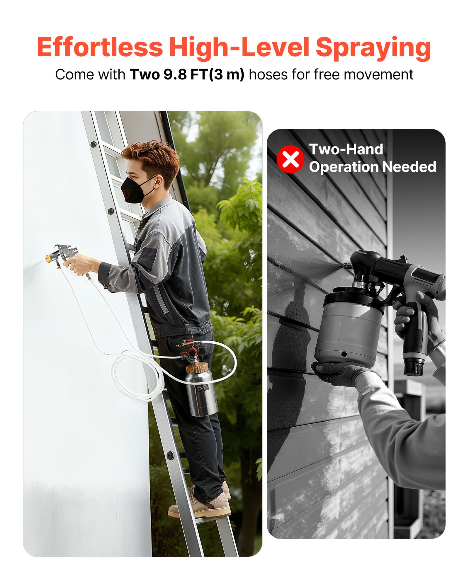 Featuring a 2L aluminum pressure tank and two adjustable spray guns (1.8mm & 3.0mm), our spray paint pressure pot delivers smooth coating control. Its lightweight design reduces hand fatigue, while the full exterior cover structure supports steady spraying on furniture, walls, fences, and more.