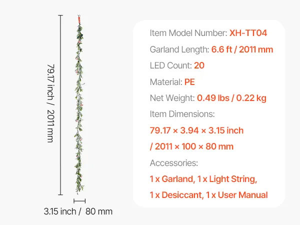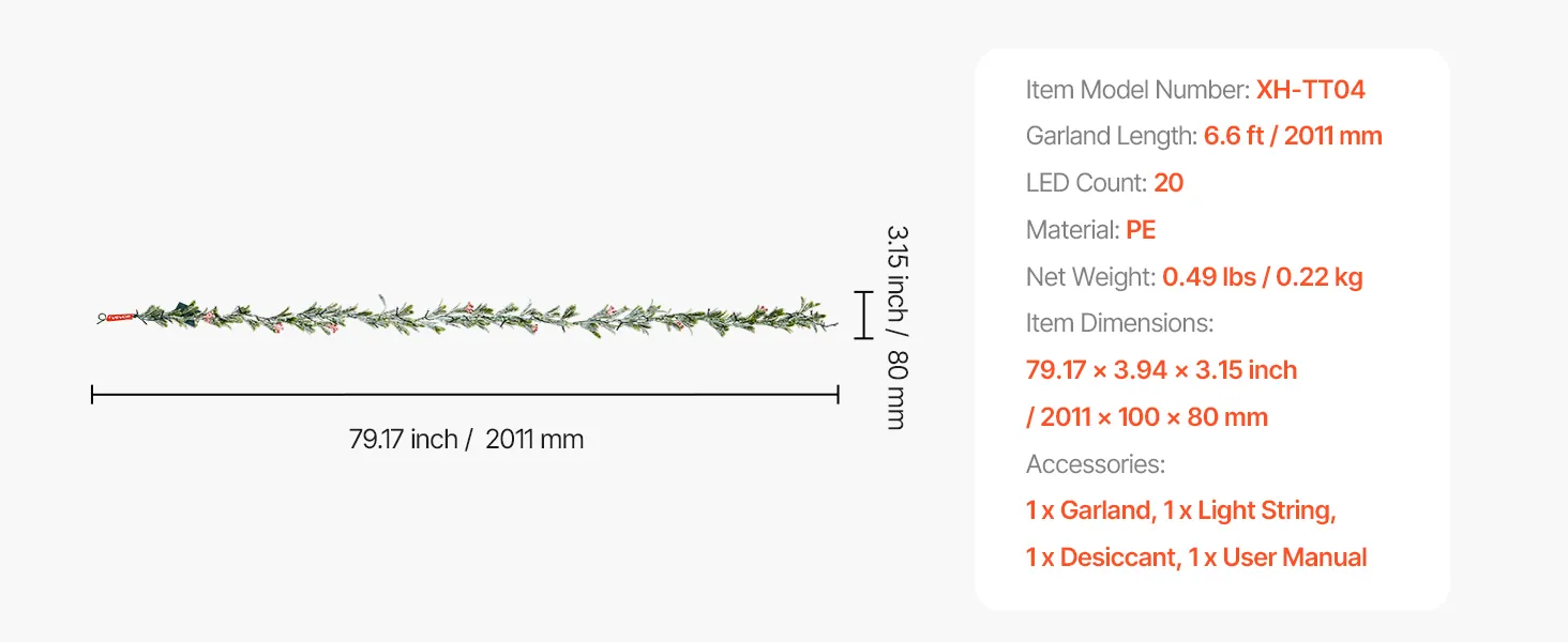 Equipped with soft, energy-efficient LED lights, this garland glows beautifully at night—adding a dreamy touch to your Christmas tree, wreath, or room décor and creating a magical holiday atmosphere.