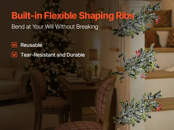 Our real-touch garland features built-in flexible shaping strips inside the branches, offering excellent bendability and tensile strength. It won’t snap when twisted or wrapped, making it easy to use and long-lasting through multiple seasons.
