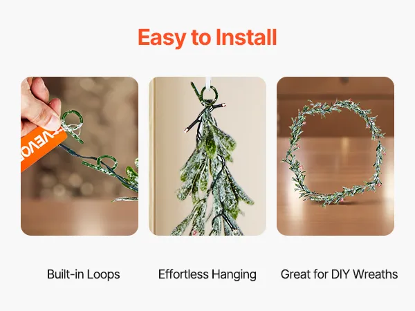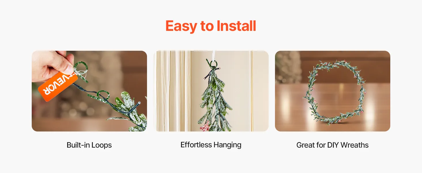 Built-in hanging loops make this Christmas greenery garland easy to install—no tools needed. The sturdy design allows quick decorating on trees, railings, windows, or mantels, saving you time during the busy season.