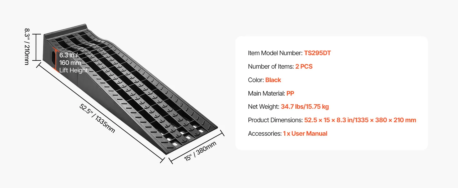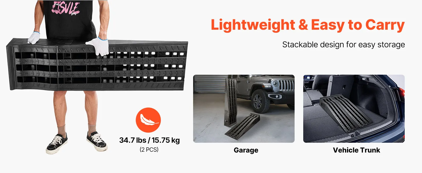 Crafted from PP material, these oil change ramps are lightweight and easy to carry. Compact in size, they are space-saving to store in your garage or vehicle trunk for quick access when needed.