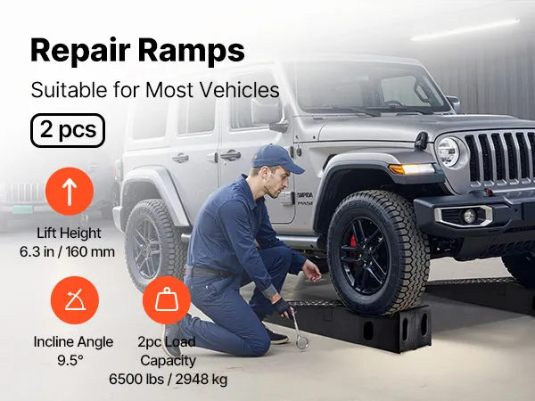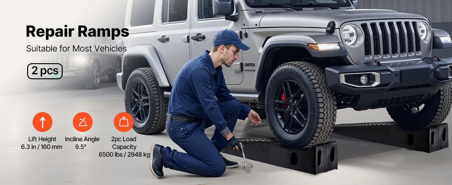 VEVOR Car Ramps, 2 PCS 5897 kg GVW Capacity, 160 mm Lift Height, Portable High Profile Car Service Ramps for Home Garage Maintenance and Oil Changes, Heavy Duty for Truck SUV Vehicle Repair, Black