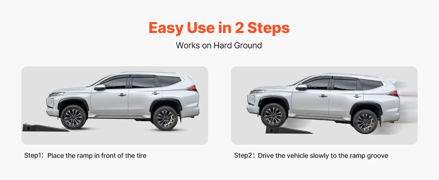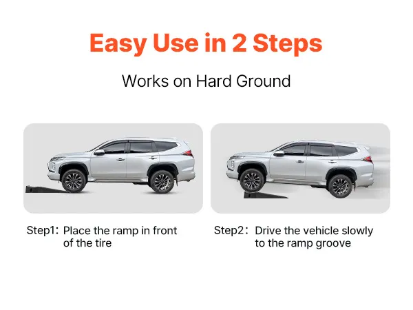 For secure operation, please position the car service ramp on a hard, high-friction surface before driving onto them. This ensures stability and reliable vehicle support.
