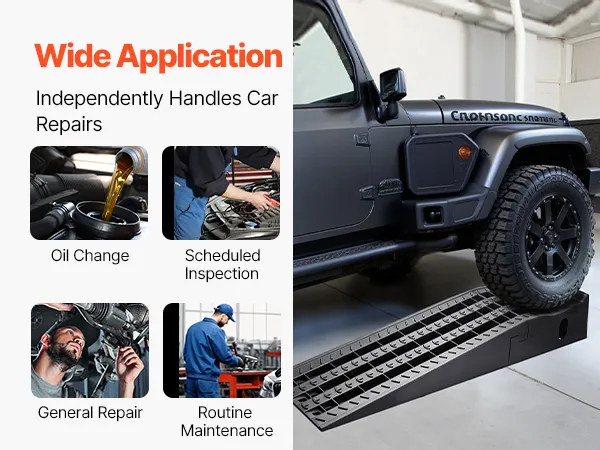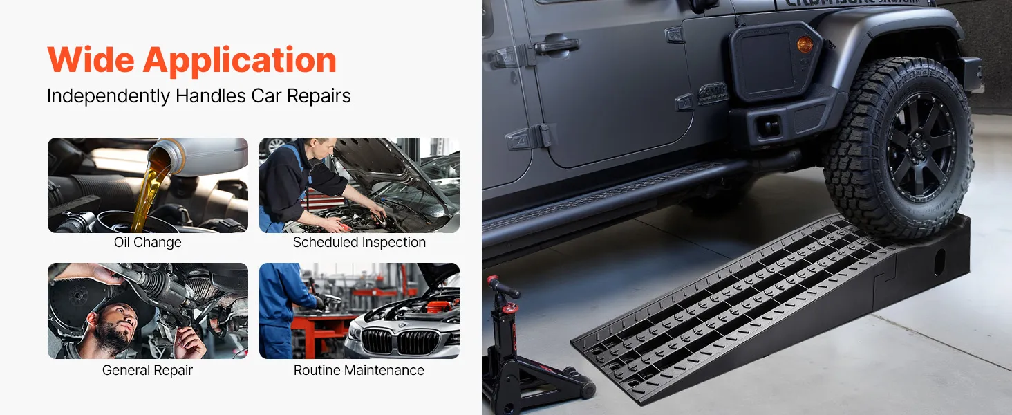 These automotive ramps are widely used for DIY upkeep or professional repair shops. They create ample space for vehicle maintenance underneath, which is ideal for oil changes, inspections, repairs, and routine maintenance.