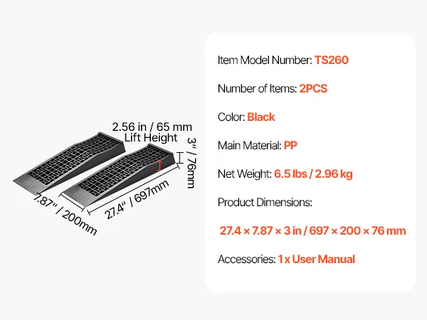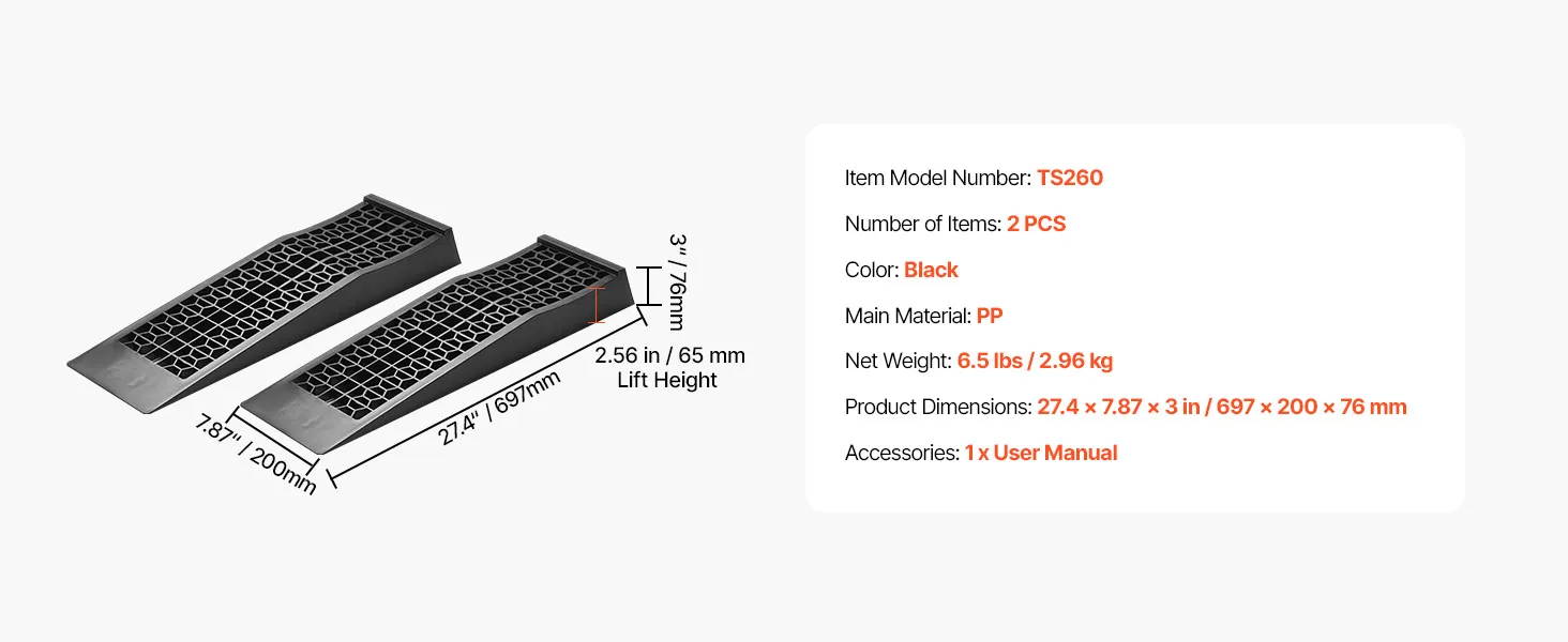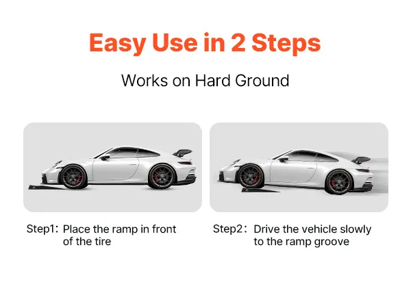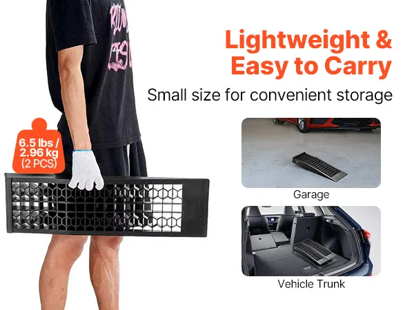 Crafted from PP material, these oil change ramps are lightweight and easy to carry. Compact in size, they are space-saving to store in your garage or vehicle trunk for quick access when needed.