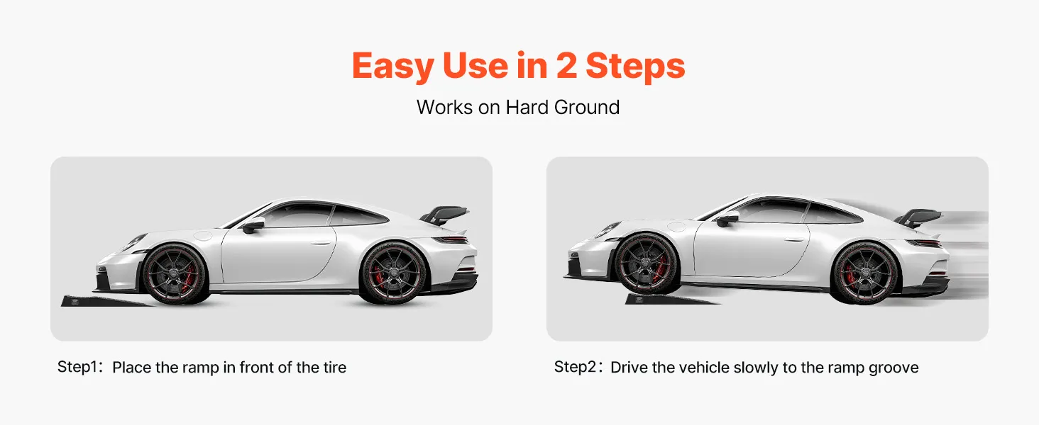 For secure operation, please position the car service ramp on a hard, high-friction surface before driving onto them. This ensures stability and reliable vehicle support.