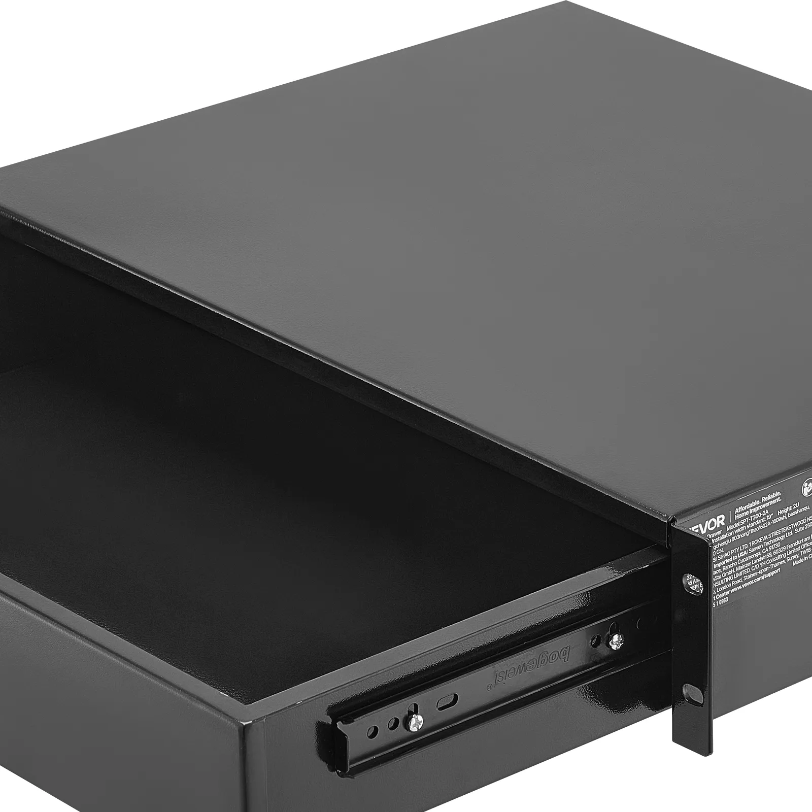 VEVOR 2U выдвижной ящик с замком для 19'' серверных стоек, грузоподъемность 22.68 кг, стальной, с кабель-менеджментом