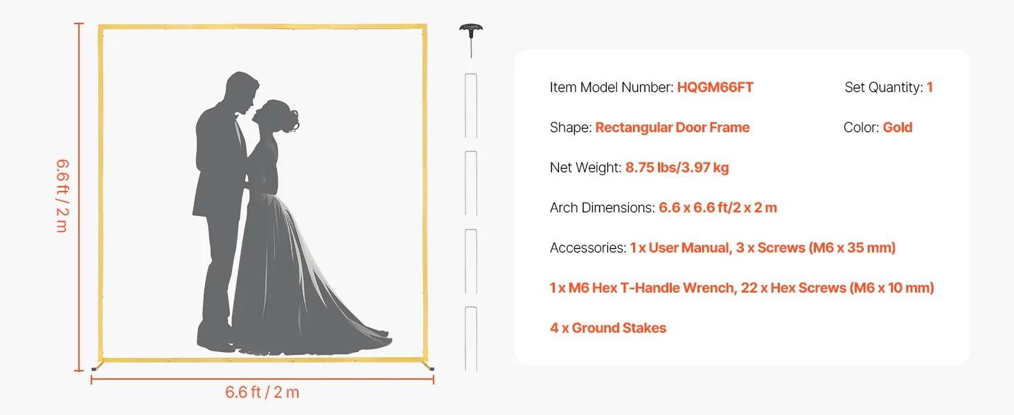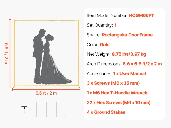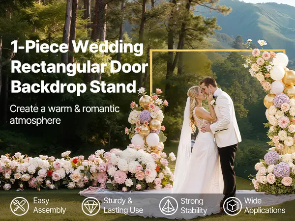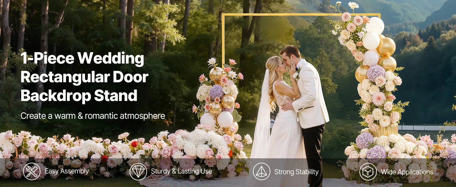 • Elegant Design: This 1-set rectangular arch backdrop stand, with dimensions of 6.6 x 6.6 ft, is suitable for indoor and outdoor use. It enhances the visual appeal, creating a unique romantic atmosphere for any celebration