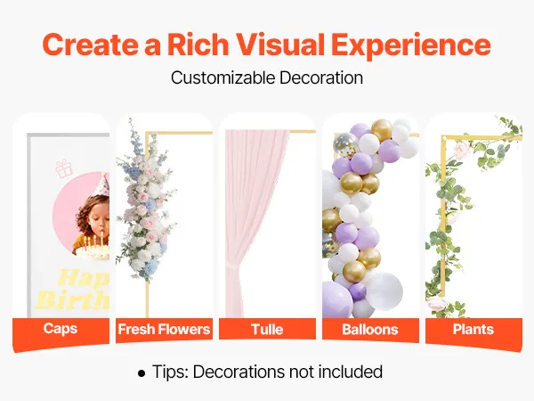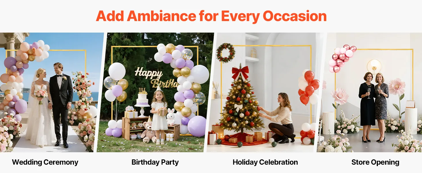 • Versatile Use: Ideal for weddings, parties, holiday celebrations, or store opening decorations, the metal arch stand allows flexible decoration with balloons, flowers, tulle fabric, LED lights, and more. (NOTE: Decorations are not included)