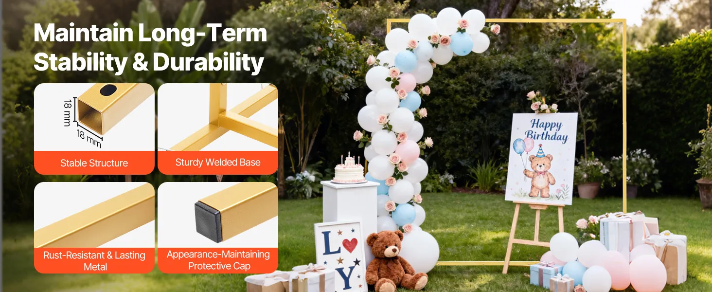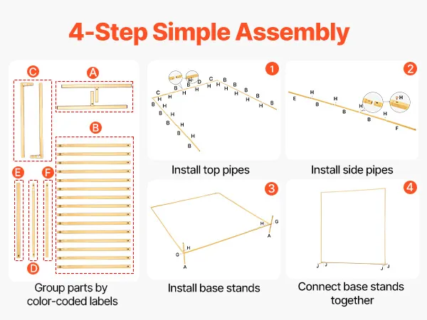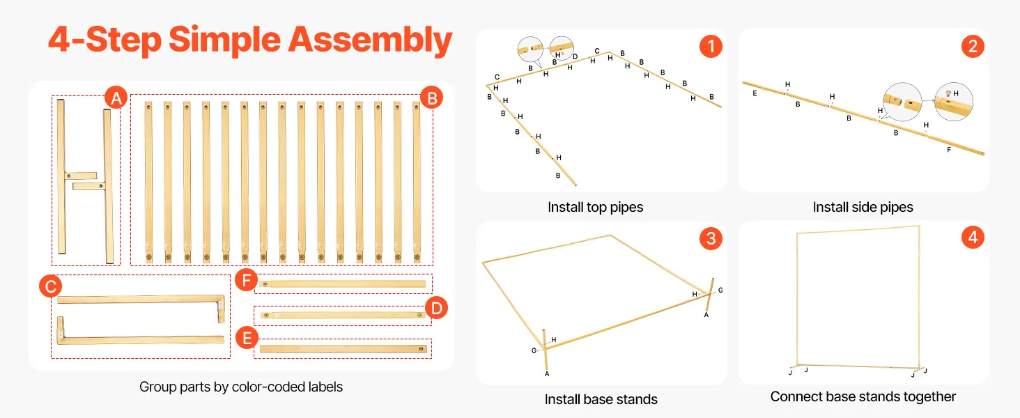 • Easy Assembly: Our gold arch backdrop includes an instruction manual to show each step of the installation clearly. Each part is numbered and color-coded to correspond with the manual, making grouping and assembly simple without stress