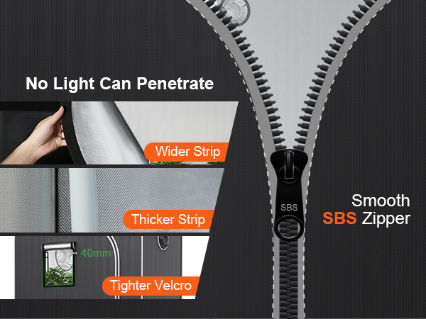 Наша палатка для выращивания в помещении была дополнена усовершенствованными светозащитными элементами, включая 40-миллиметровую липучку и соединительные полоски, обеспечивающие максимальную светозащиту.