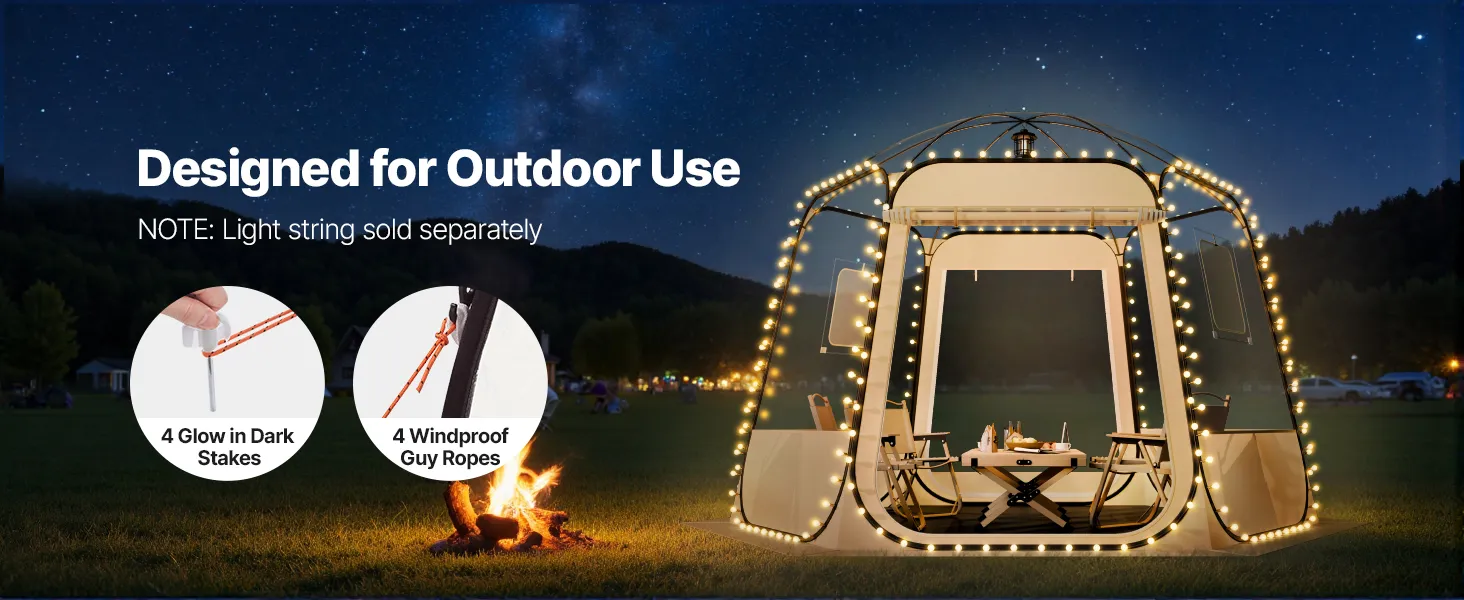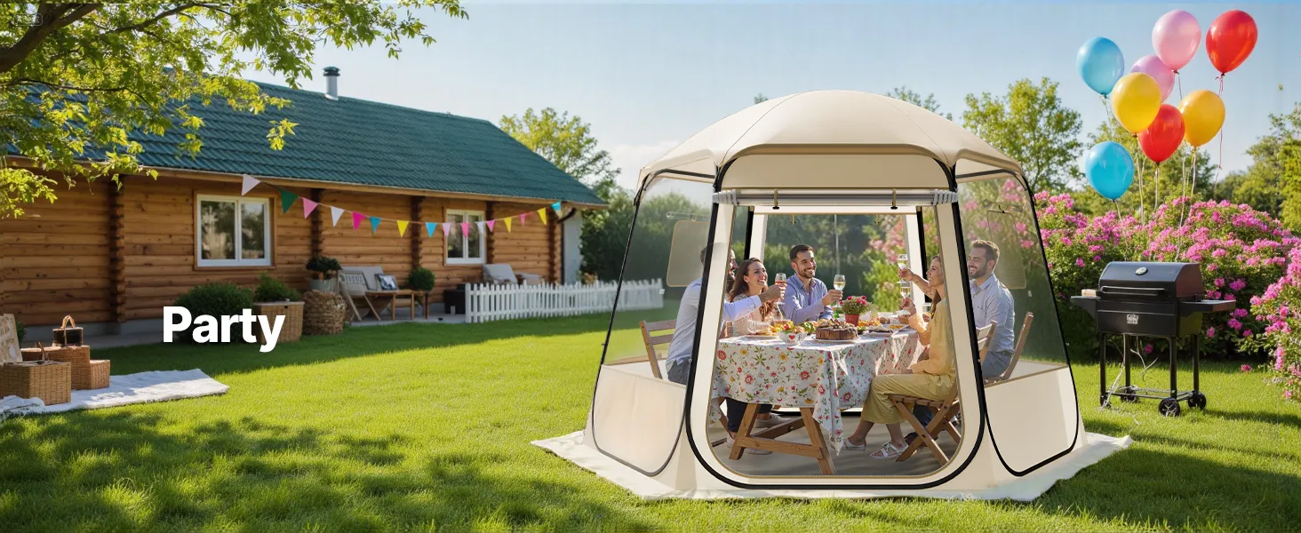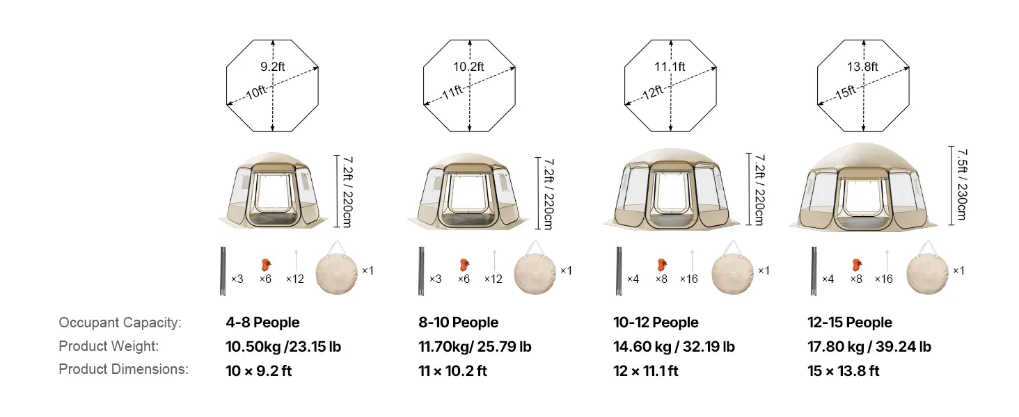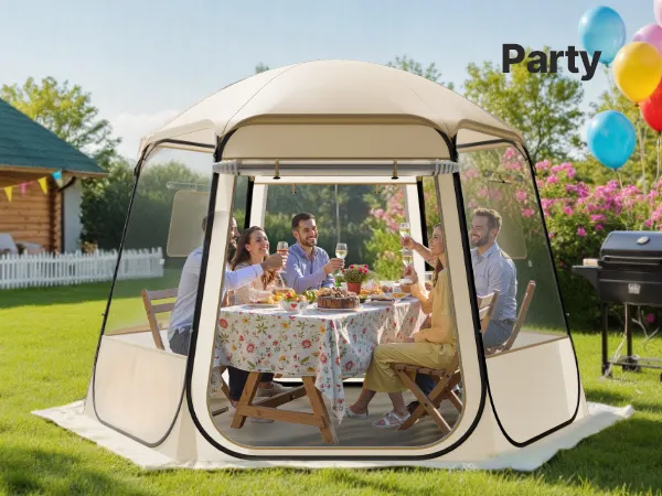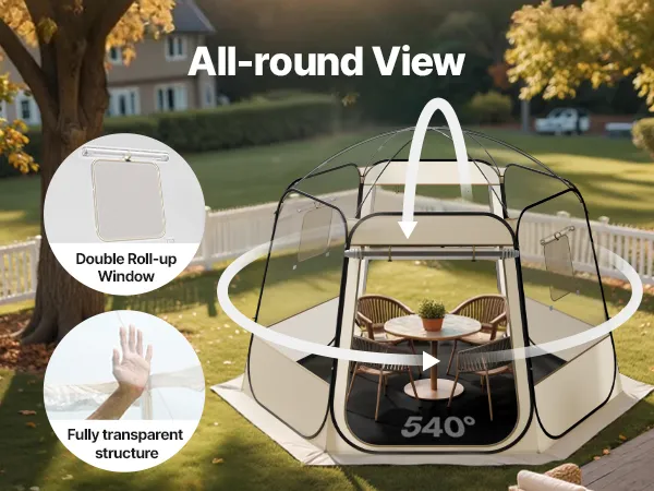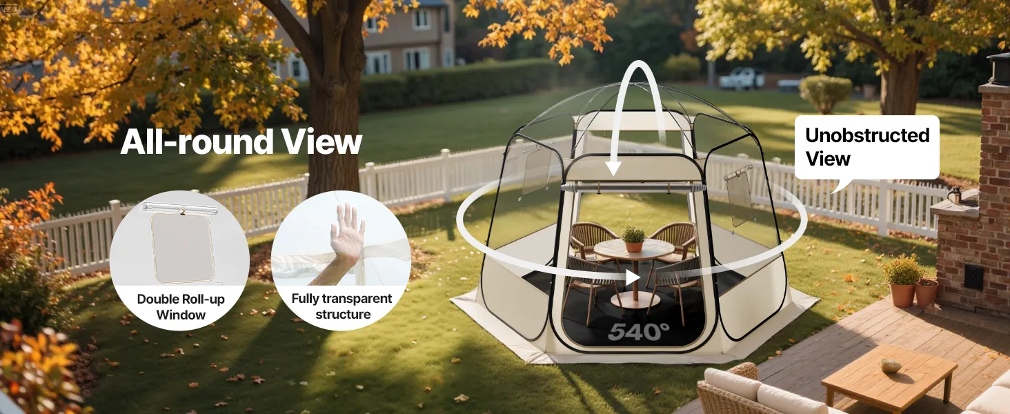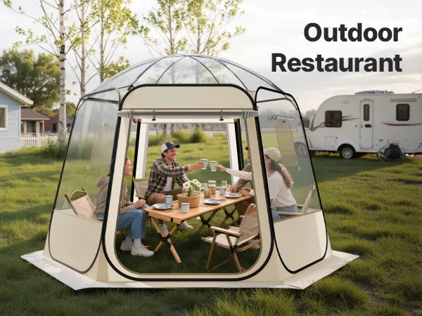 This 4–8 person pop-up bubble tent is made of TPU and 210D Oxford fabric, with steel wire for stability and durability. The pop-up structure allows for quick setup in seconds, making it ideal for outdoor or backyard use. Multiple roll-up side windows let you easily adjust airflow and privacy.