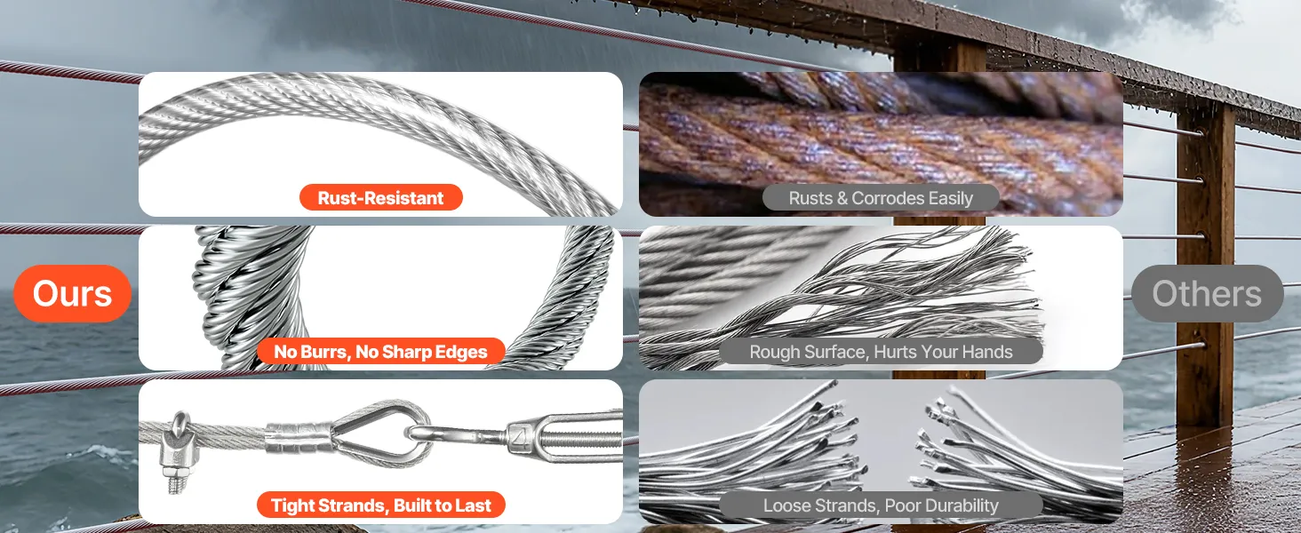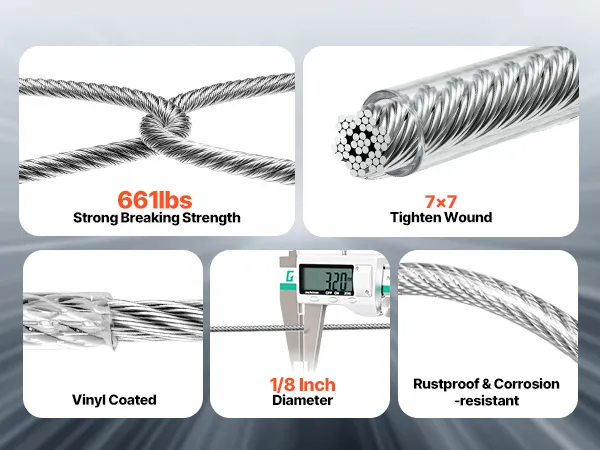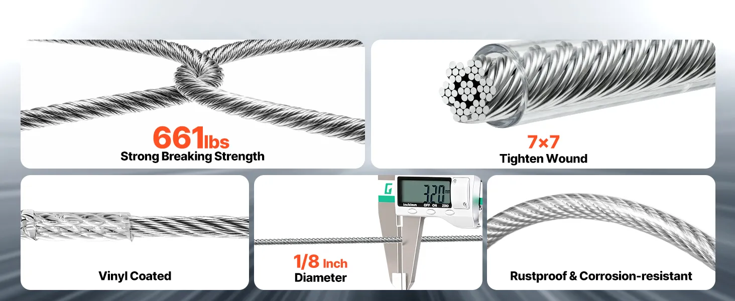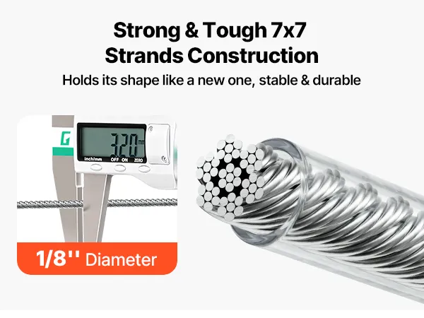 This premium 7x7 304 stainless steel cable with a PVC jacket delivers strong, corrosion-resistant performance for indoor and outdoor projects. You use it for railings, fences, trellises, and string lights—ideal for homeowners, gardeners, and DIY makers who want secure, durable, efficient installs.