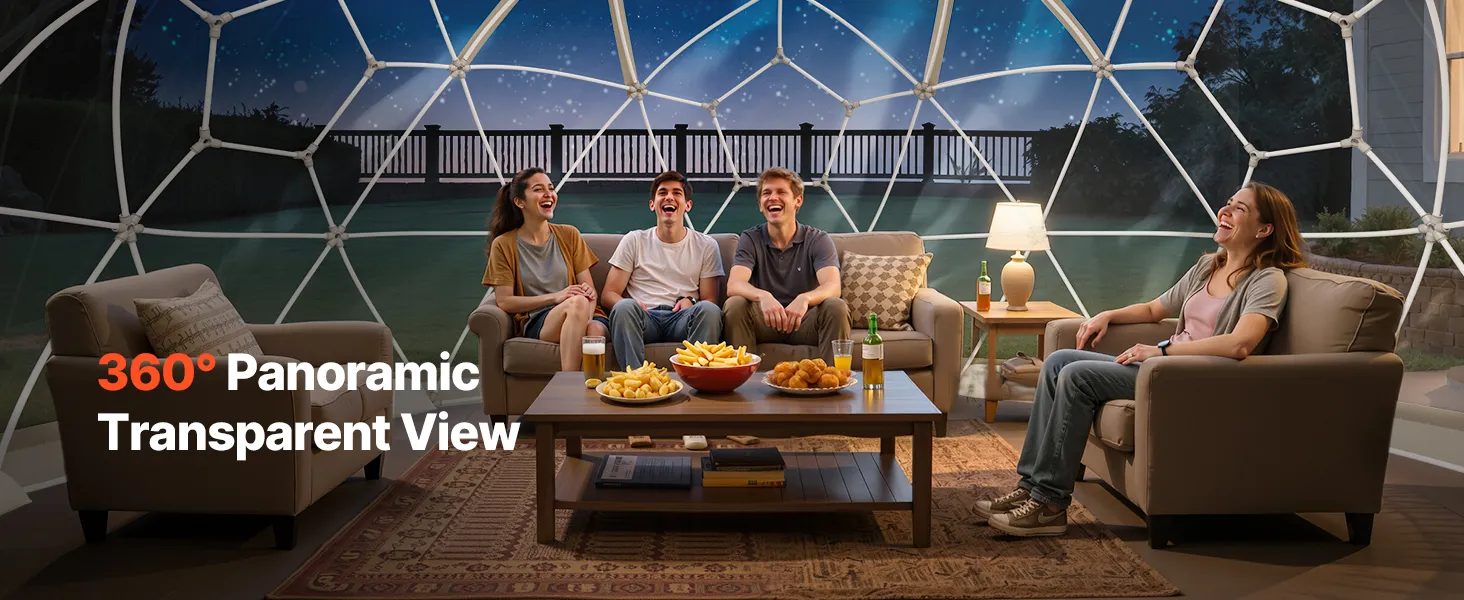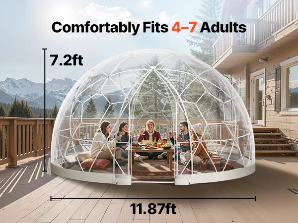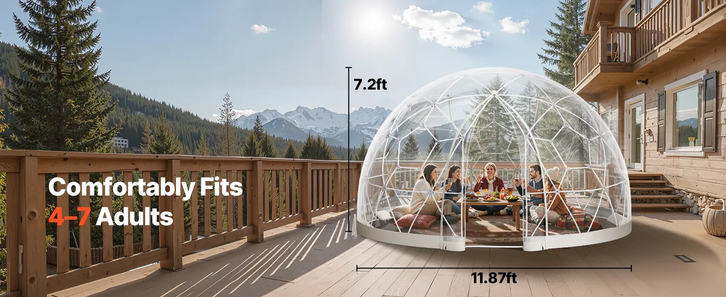 Enjoy year-round comfort with this transparent dome igloo tent, featuring 360° panoramic views, sturdy all-weather construction, and a stylish design. This bubble tent is ideal for gardens, patios, or gatherings—your cozy outdoor retreat in any season.