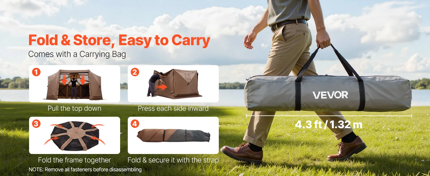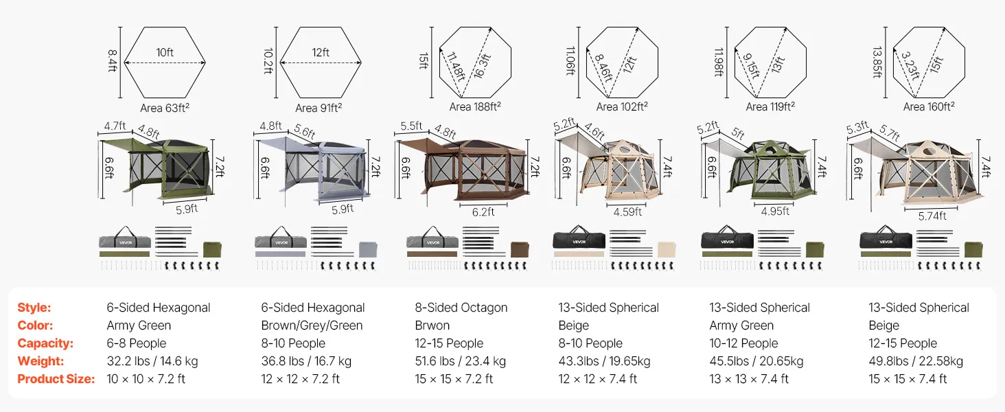 • Quick Setup & Easy Storage: The canopy screen tent comes with pop-up hub design that requires no tools for fast assembly. Folds compactly into a 4.3 ft / 1.32 m carry bag, easy to store in SUV or RV trunks