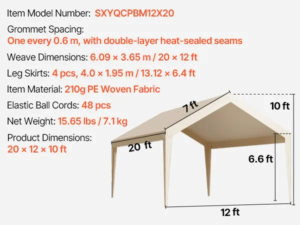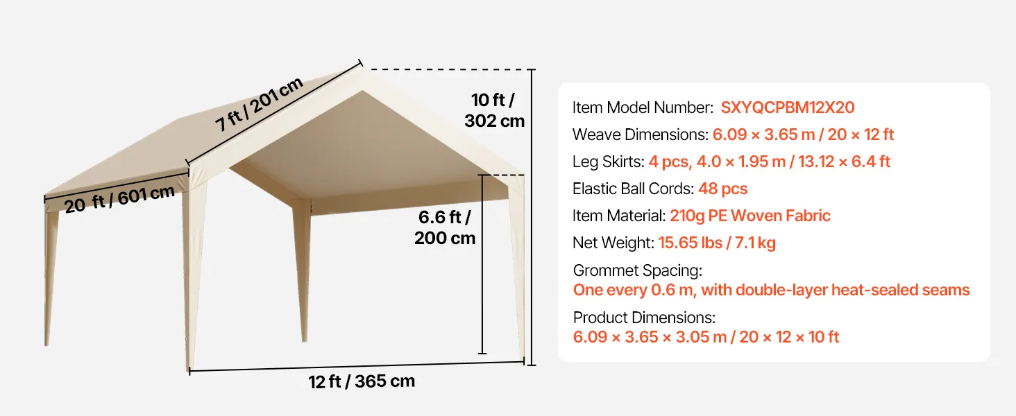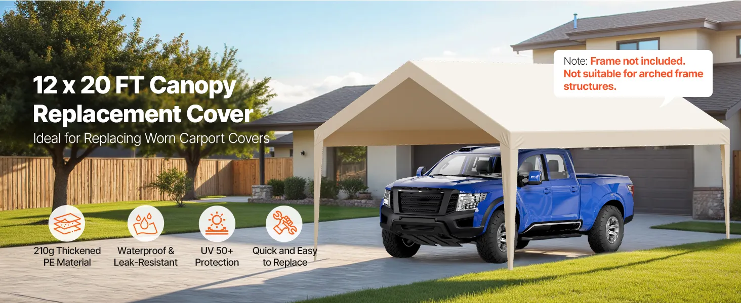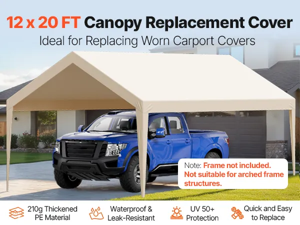 The standard 12×20 ft carport replacement cover is designed to fit most carport frames. No trimming or modifications required for easy replacement. It is ideal for quick DIY replacement.