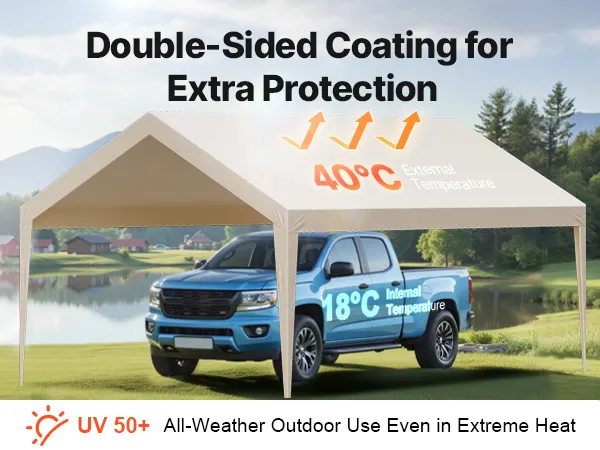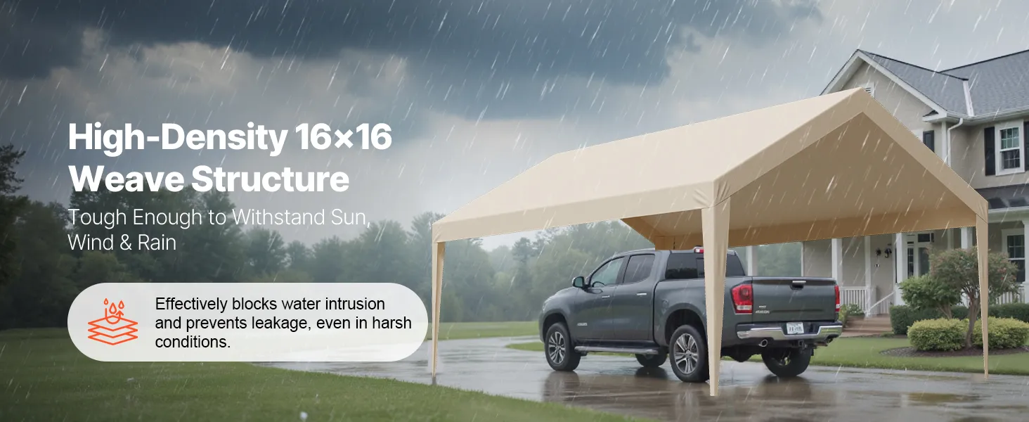 VEVOR Carport Replacement Canopy, 3.6 x 6 m Potable Garage Tent Top Tarp, UV-Resistant & Waterproof Car Shelter Tarp, Heavy Duty Car Port Cover with Ball Buggees, Beige, Frame Not Included