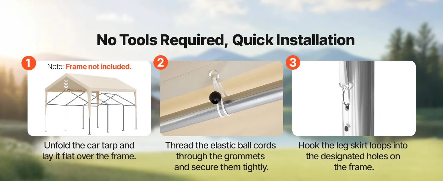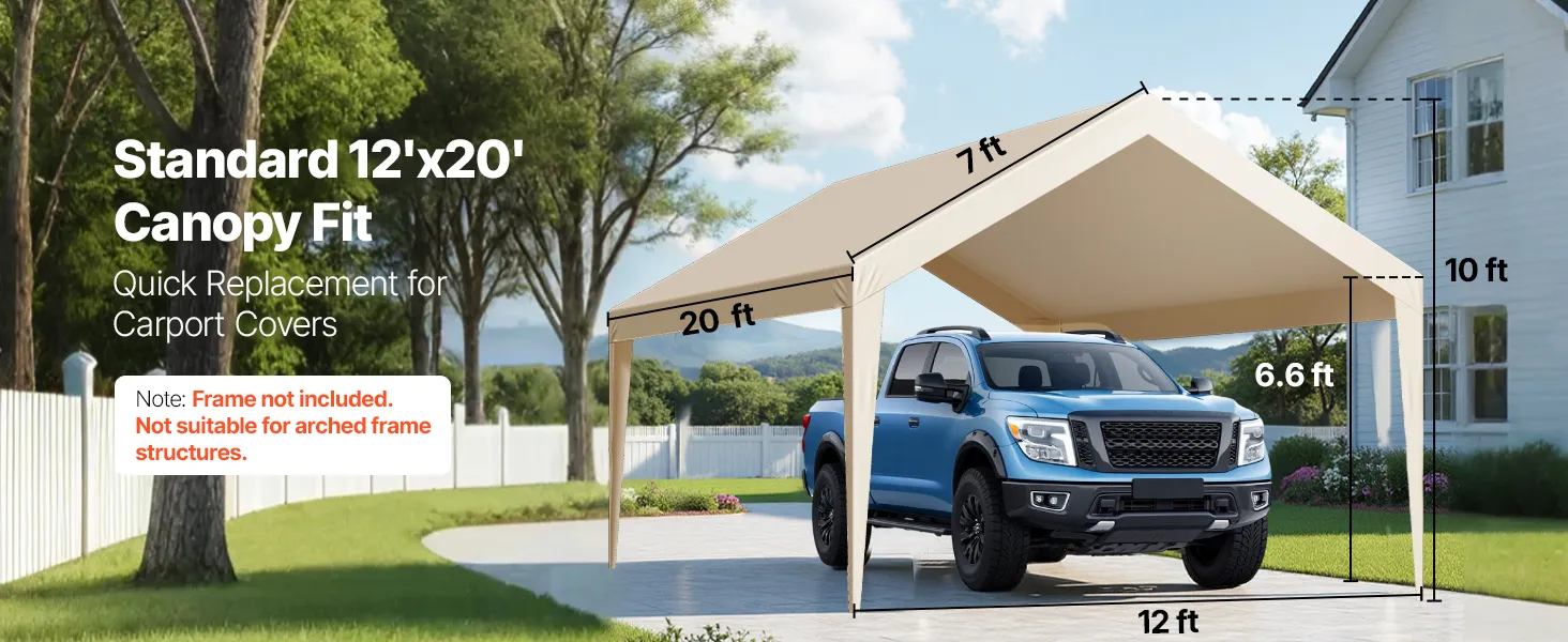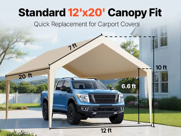 The standard 12×20 ft carport replacement cover is designed to fit most carport frames. No trimming or modifications required for easy replacement. It is ideal for quick DIY replacement.