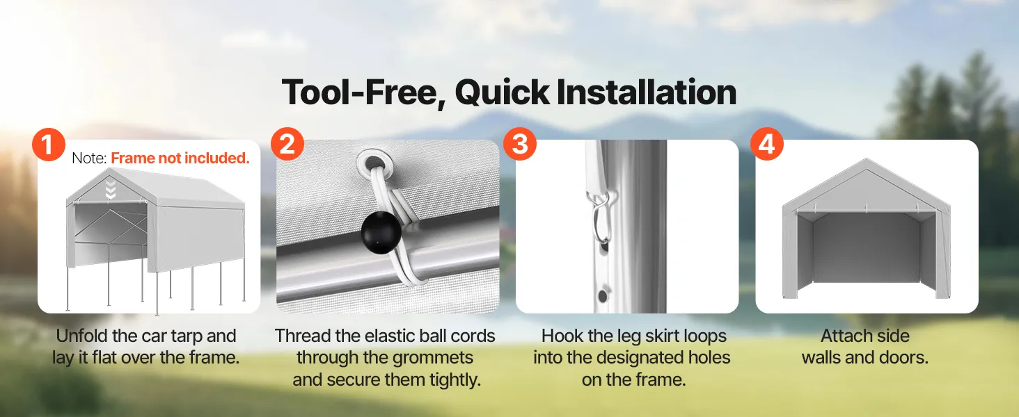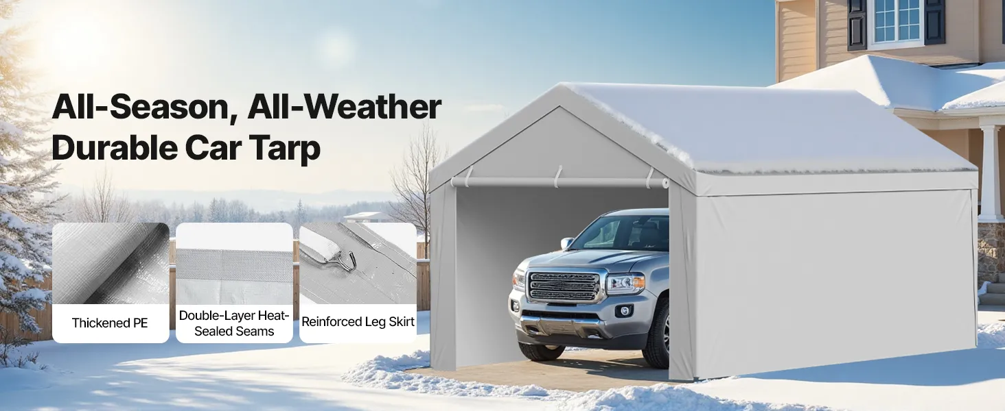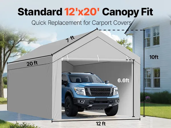 The standard 12×20 ft carport replacement cover is designed to fit most carport frames. No trimming or modifications required for easy replacement. It is ideal for quick DIY replacement.