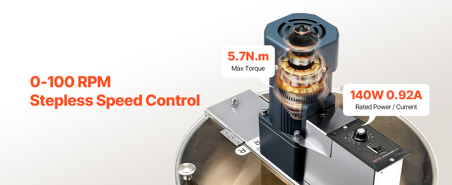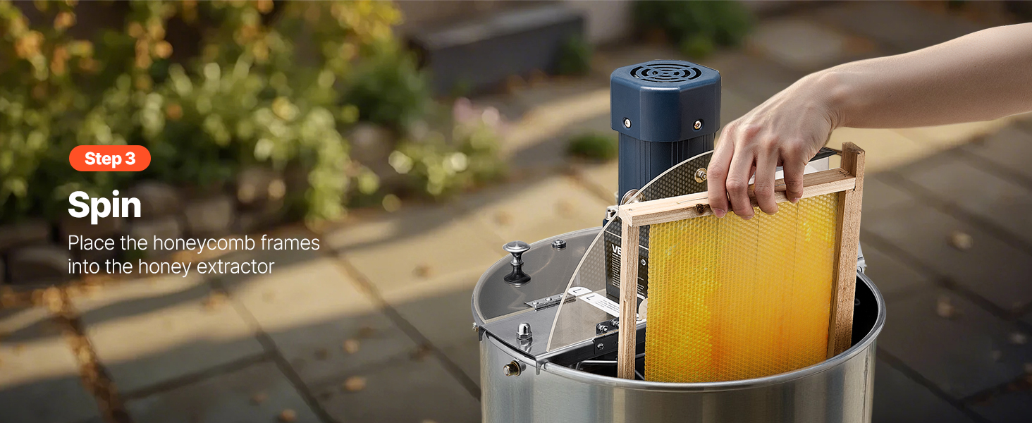 VEVOR Electric Honey Extractor, 3 Frame Honey Spinner with Transparent Lid, 140W Stainless Steel Honeycomb Drum Spinner, Height Adjustable, Honeycomb Extraction Equipment for Beekeeping