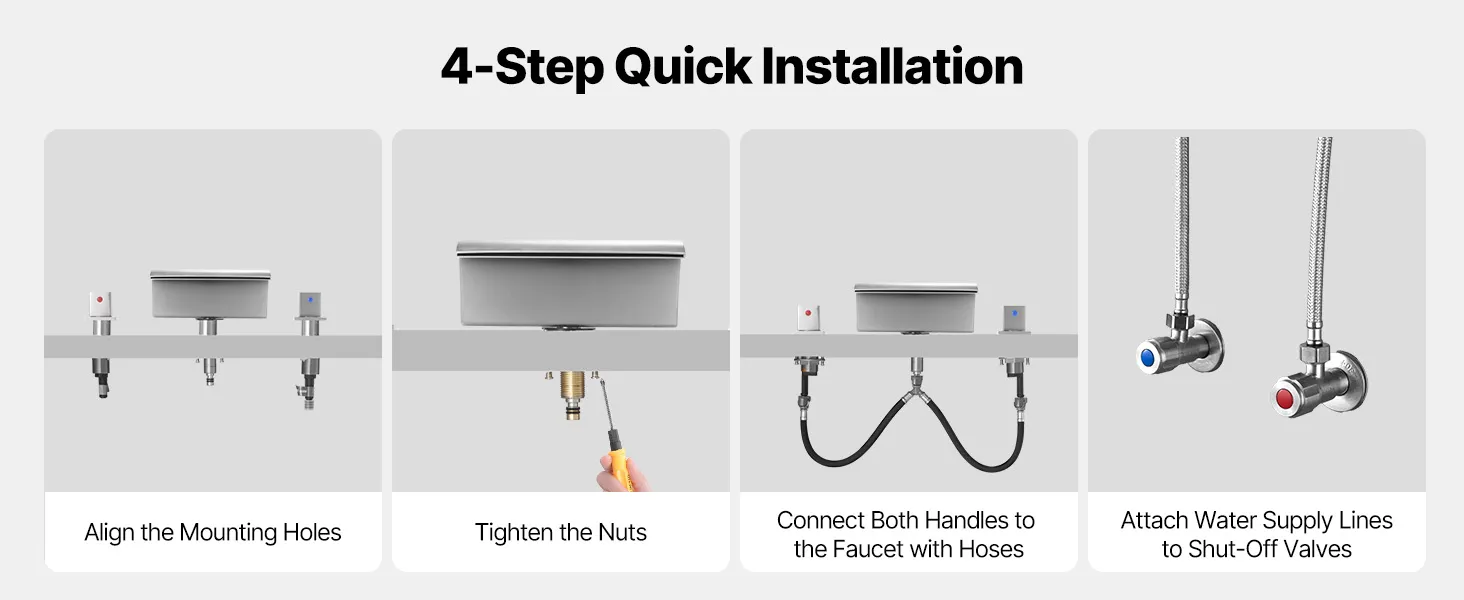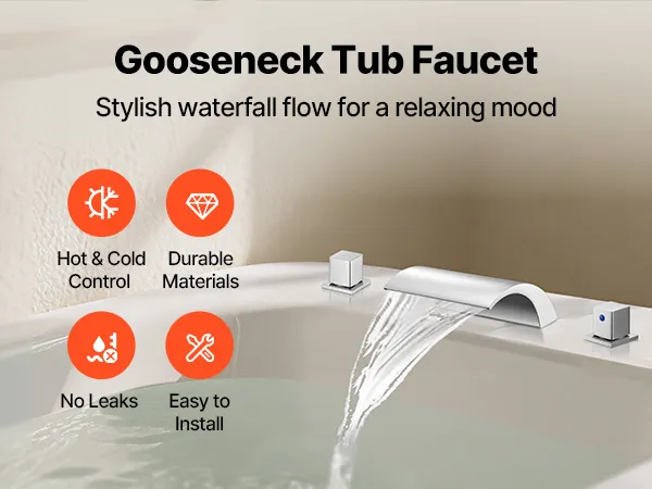 With a powerful 2.2 gal/min flow, this roman tub faucet fills a 40-gallon tub in 18 minutes. Its 3-hole deck design fits most bathtubs, and the stainless steel body avoids rust and discoloration. Dual handle controls lock in your ideal temperature quickly, paired with a drip-free valve for reliable use.