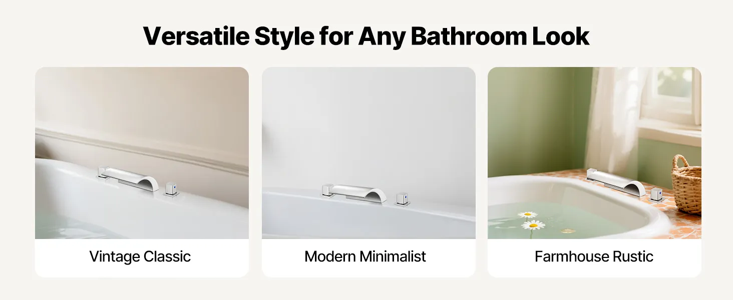 Built for visual harmony, this roman tub faucet deck mount adapts to modern, rustic, or traditional bathroom designs. Its stylish form and neutral finish blend in easily while helping elevate the overall ambiance of your bathing space.