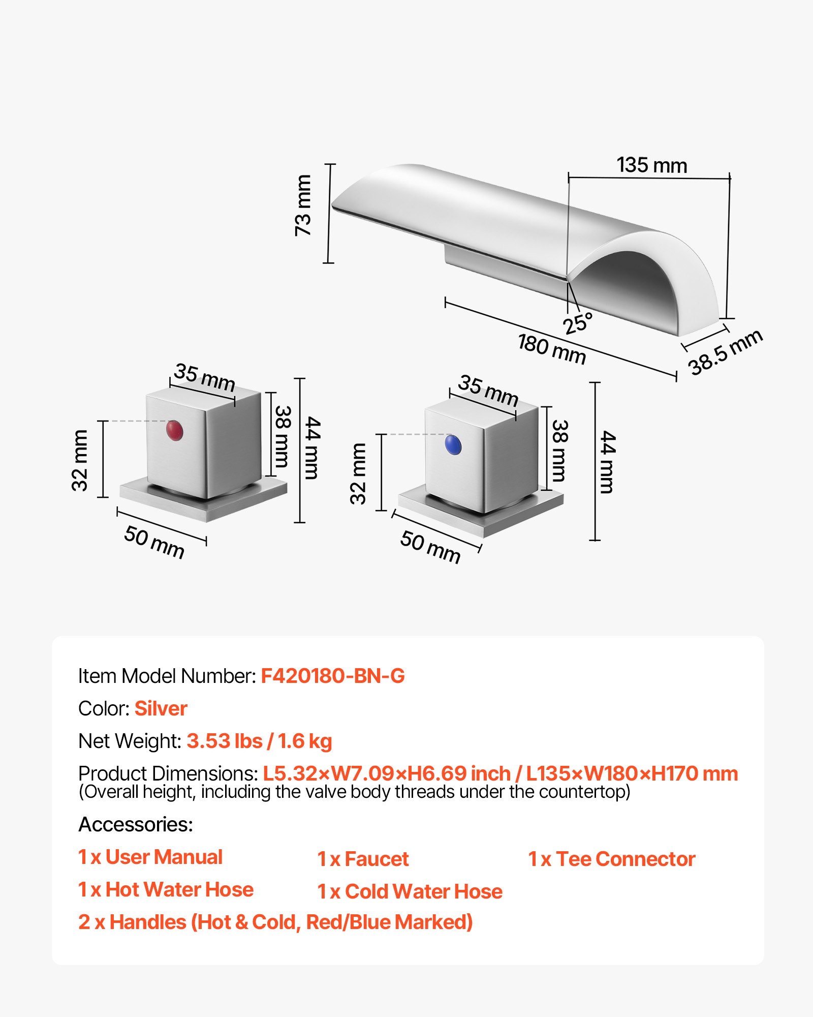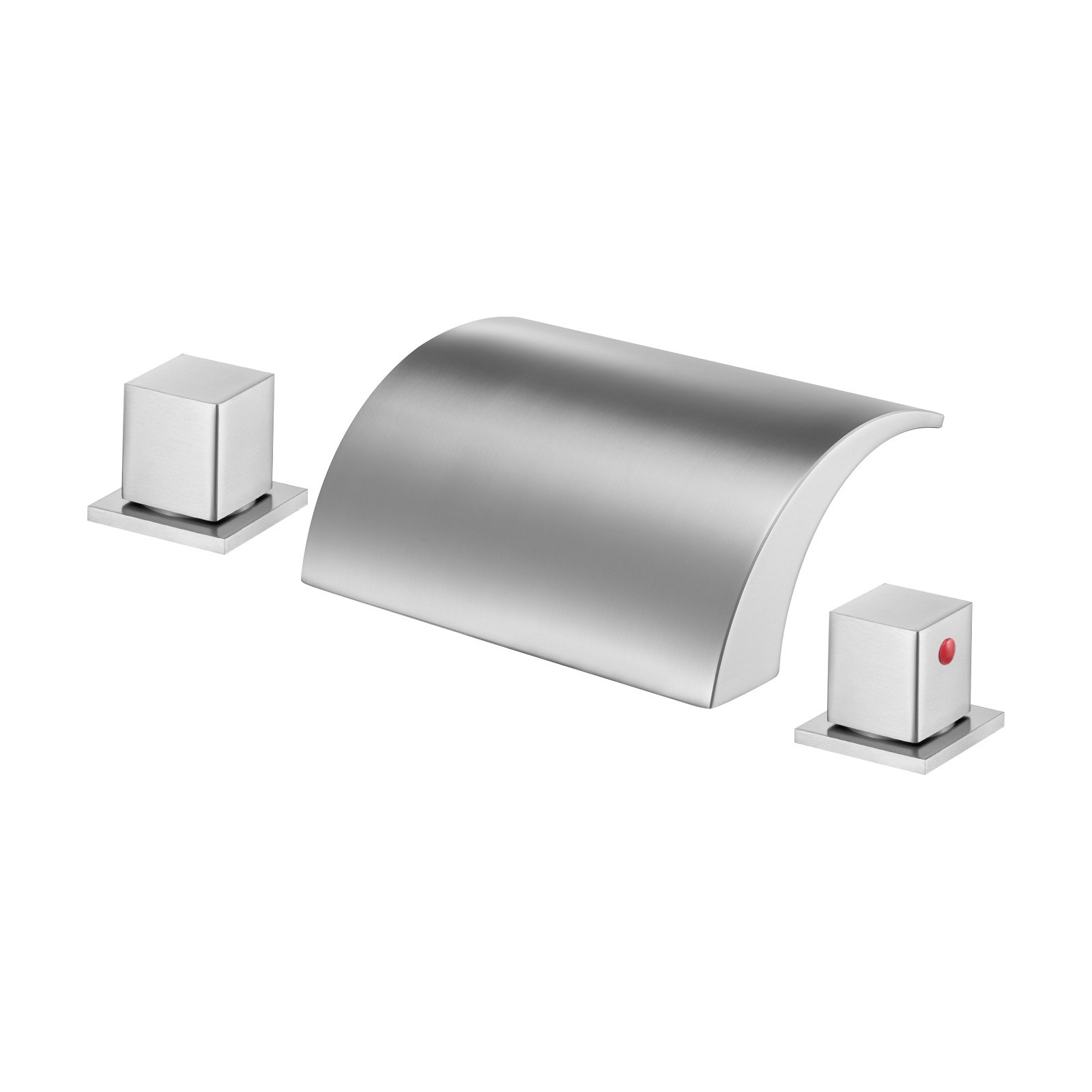 VEVOR Roman Tub Faucet, 3 Hole Waterfall Bathtub Faucet, Roman Bathtub Faucets Set with 2 Handles, Deck Mount Bath Tub Faucets Set for Pet Washing, Baby Care, Adult Bathing, Silver, Dual Water Flow