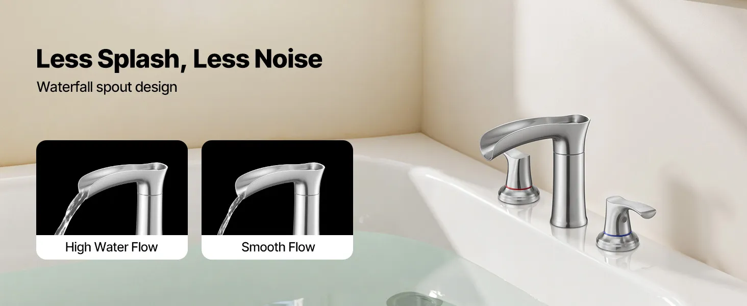 Enjoy a peaceful bath with this widespread roman tub faucet, designed to deliver a wide, soft flow that minimizes splashing. The gentle stream helps reduce water mess around your tub, keeping surfaces dry and cutting down on post-bath cleaning time.