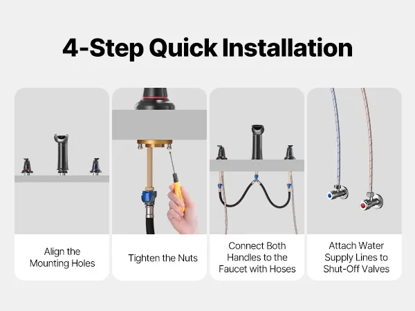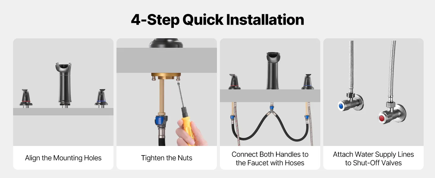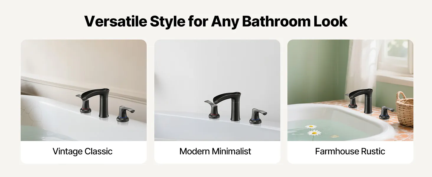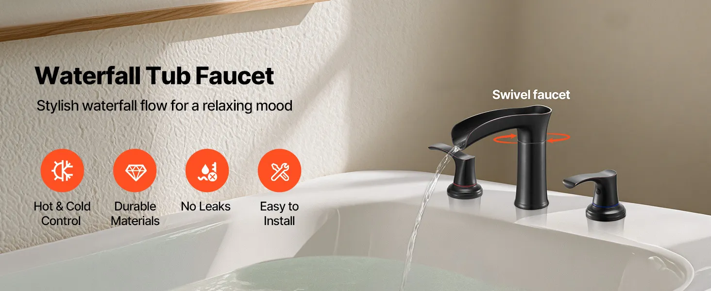 Offering a 2.2 GPM high-flow design, this VEVOR roman tub faucet can fill a 40-gallon tub in only 18 minutes. With a 3-hole deck mount layout, stainless steel construction, and dual-handle controls, it combines speed and convenience for a better bathing experience.