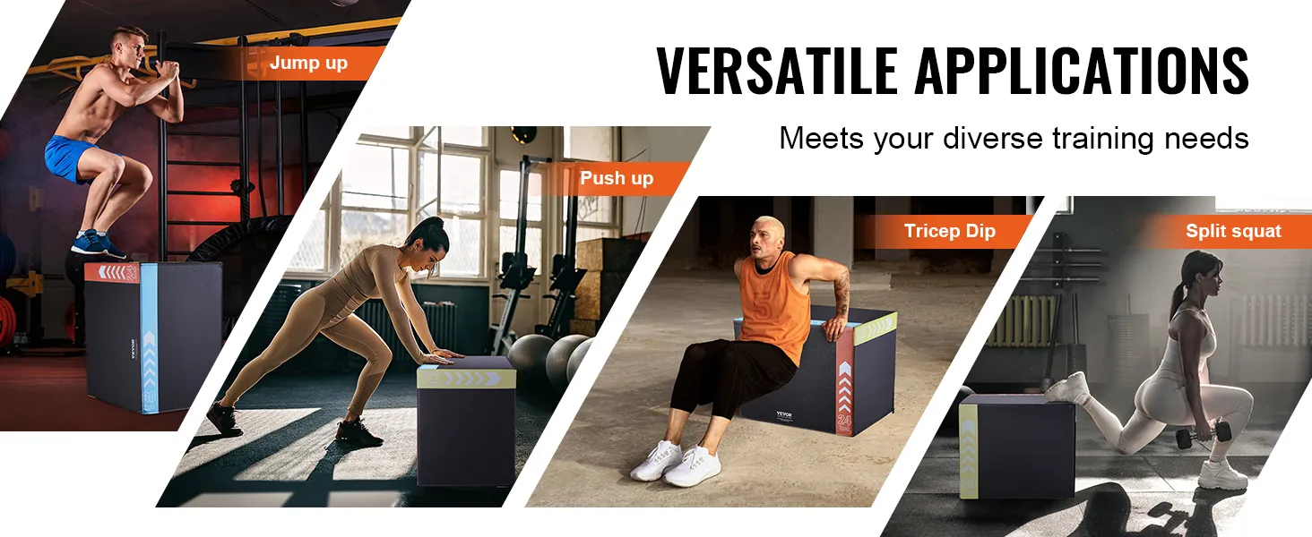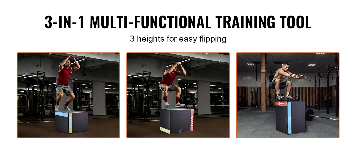 VEVOR 3-в-1 плиометрический пенополиуретановый бокс – 760x600x500 мм, нескользящая платформа для тренировок дома, черный